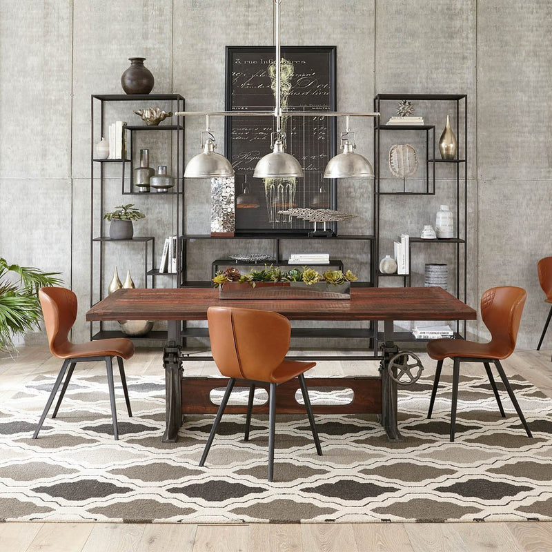 Old world inspired with an industrial style and function. The Foundry dining table is crafted from reclaimed hard woods and paired with a crank base to create a tabletop that is adjustable from a standard 30" dining height all the way up to 42" bar height. Lower it all the way for a more formal dining setting or occasions and raise it up when entertaining a more casual party. Take advantage of the function and form to make the most of this dining table.