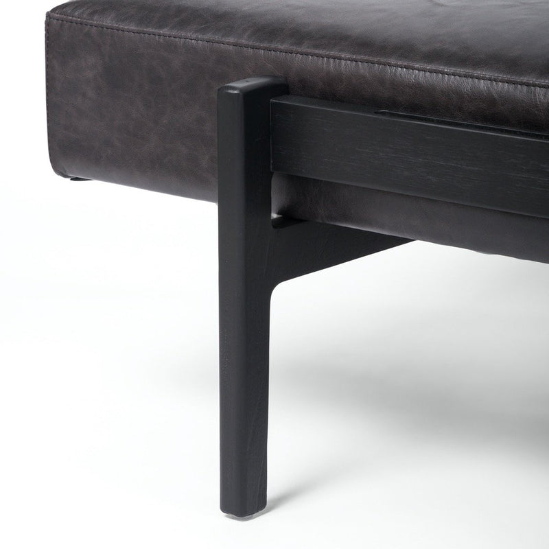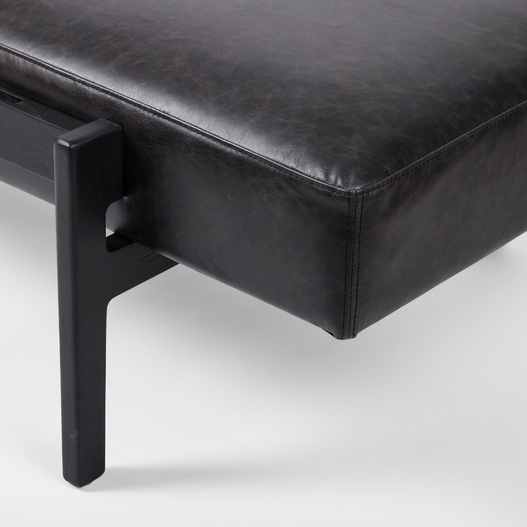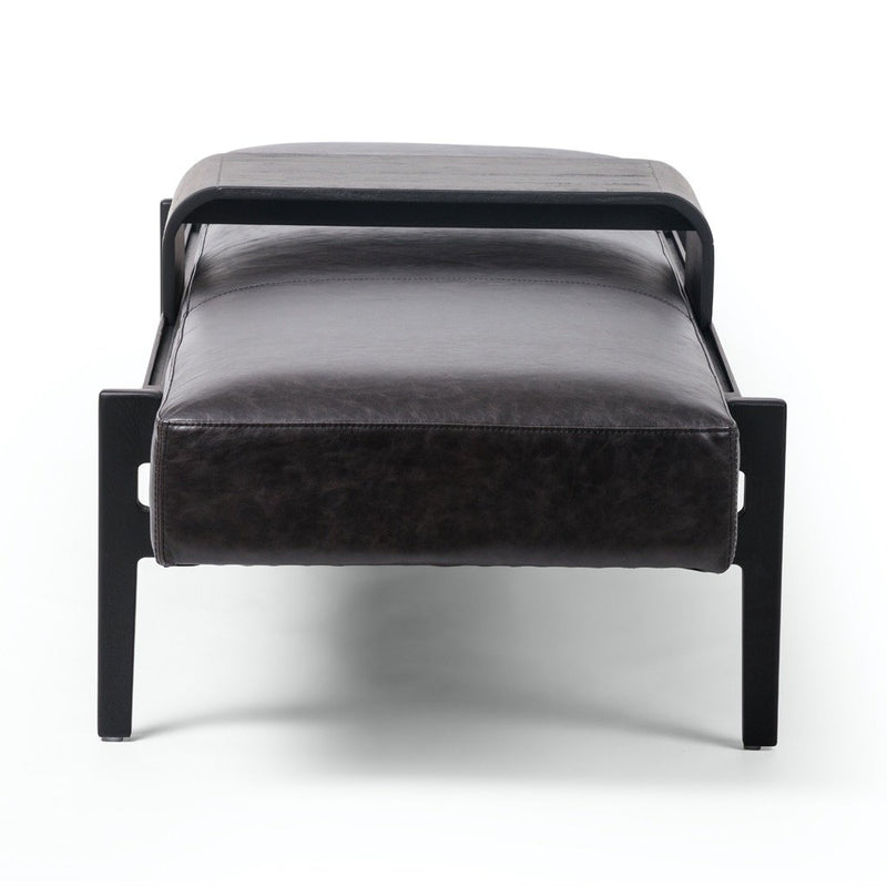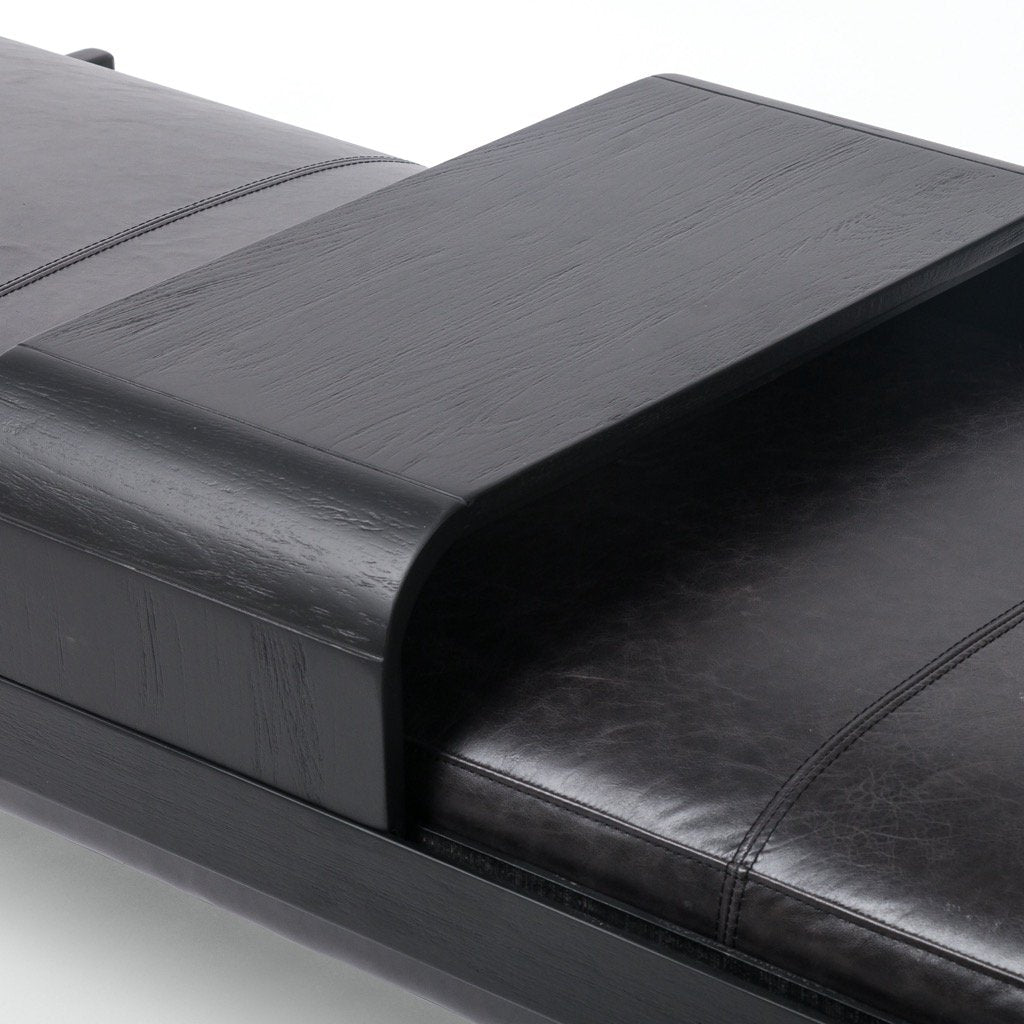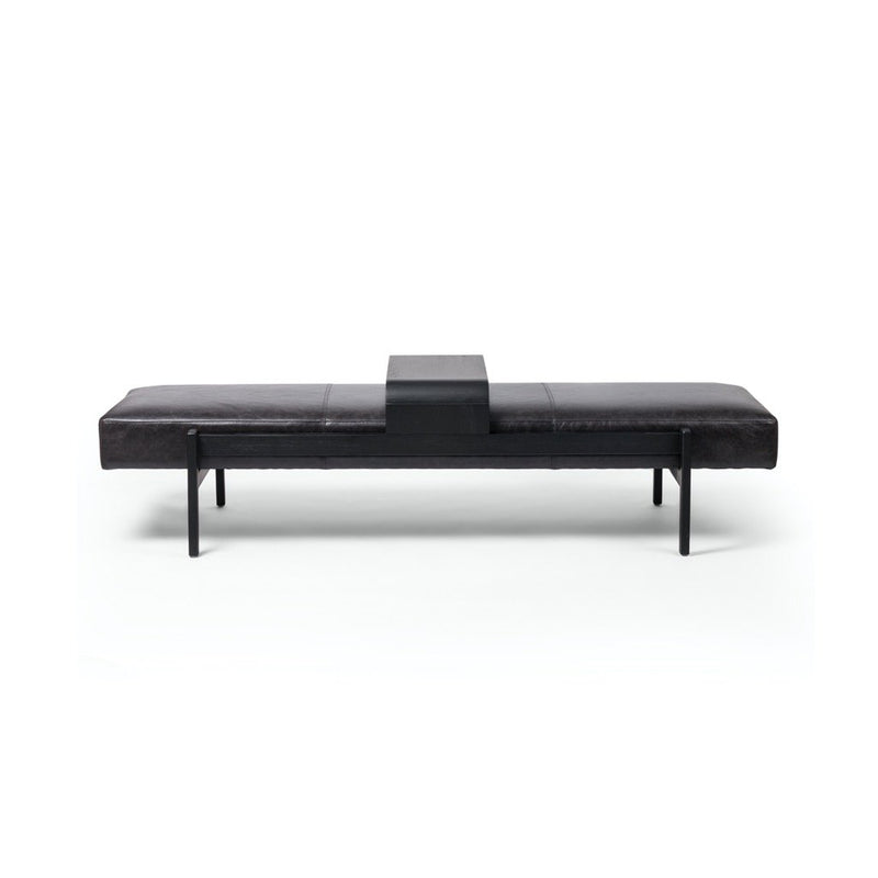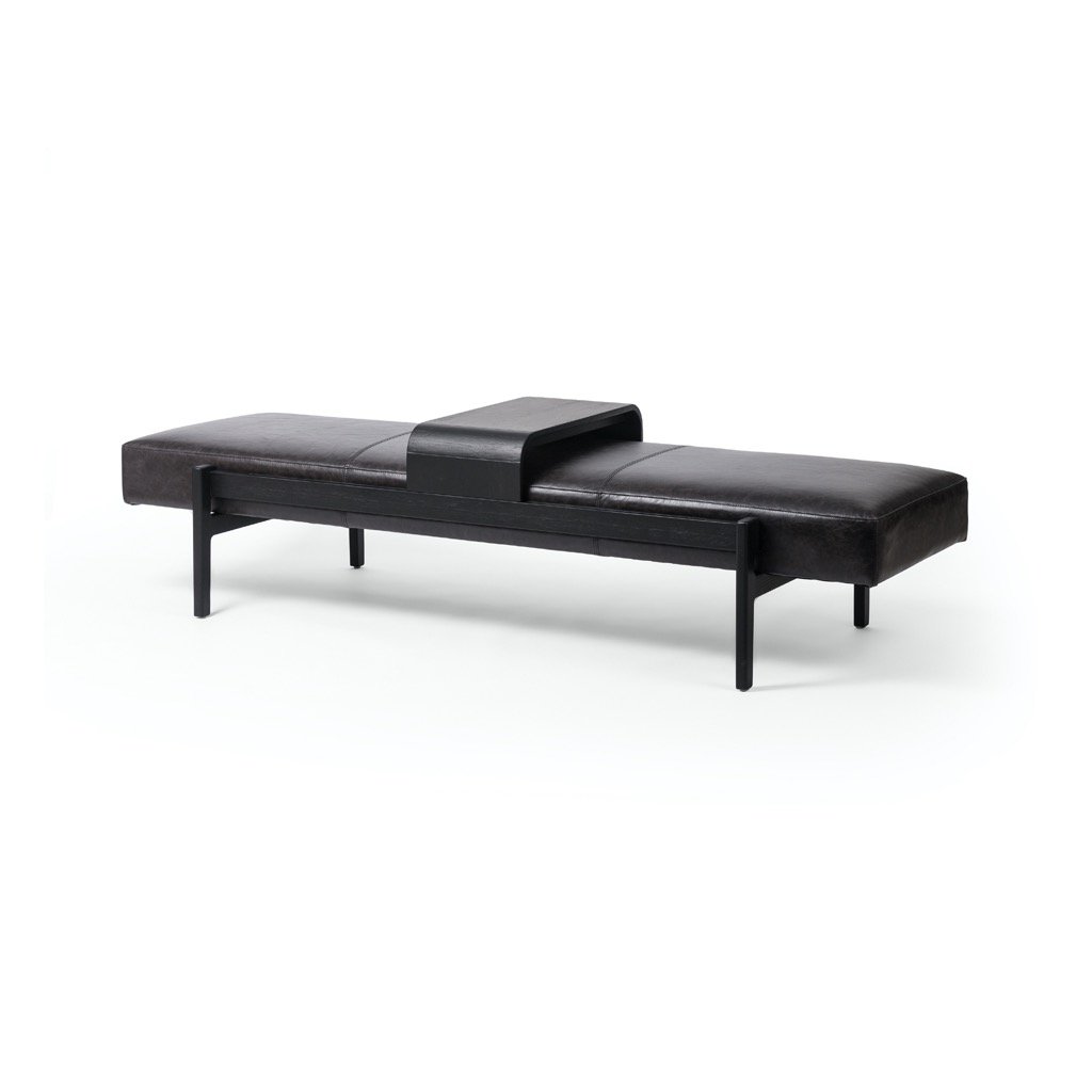 A uniquely modern statement piece inspired by the functional mid-century–style telephone bench, top-grain leather seating features a sliding tray of solid beechwood – the perfect place for a favorite book or cocktail. Great in the entryway or living room.