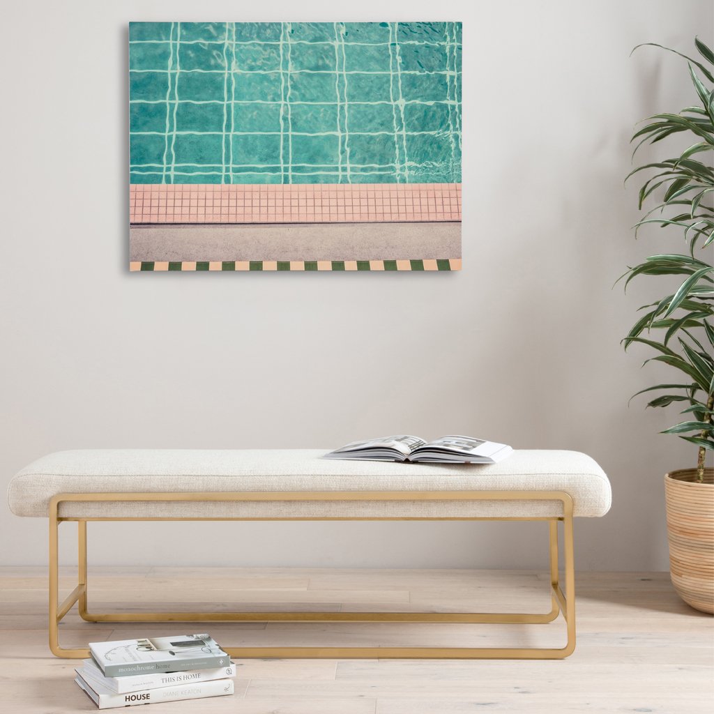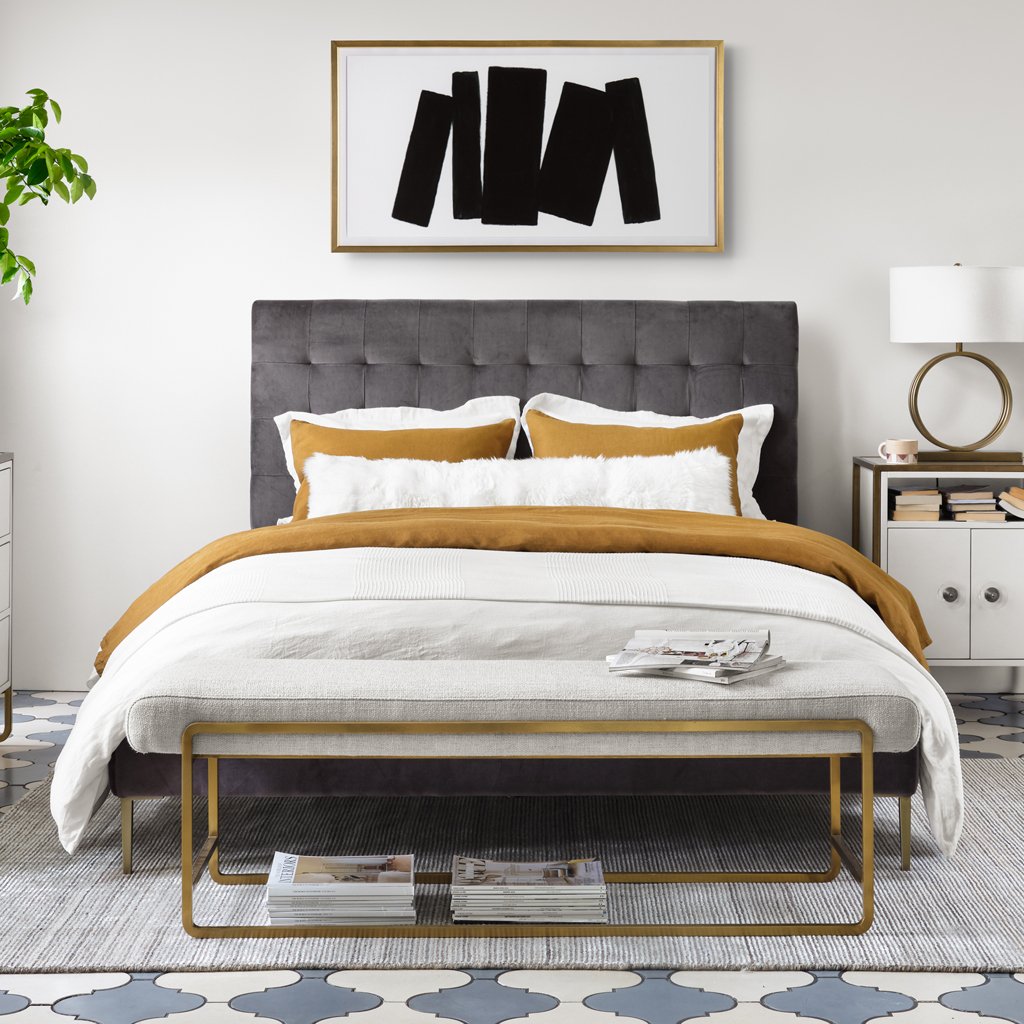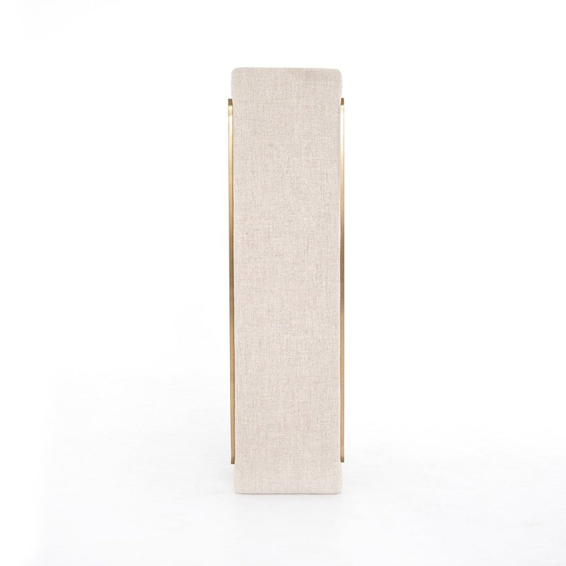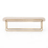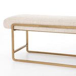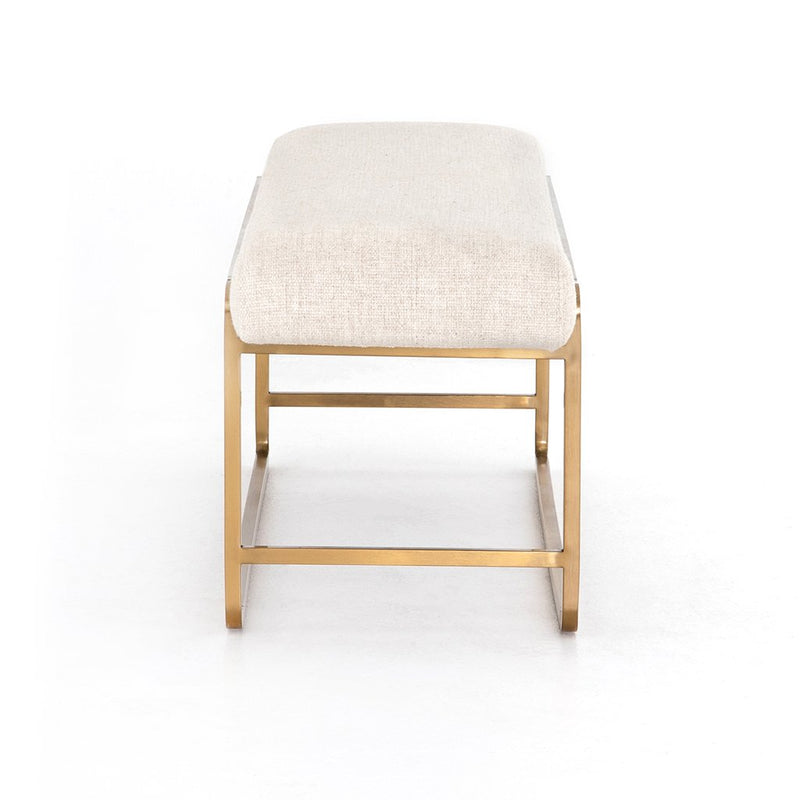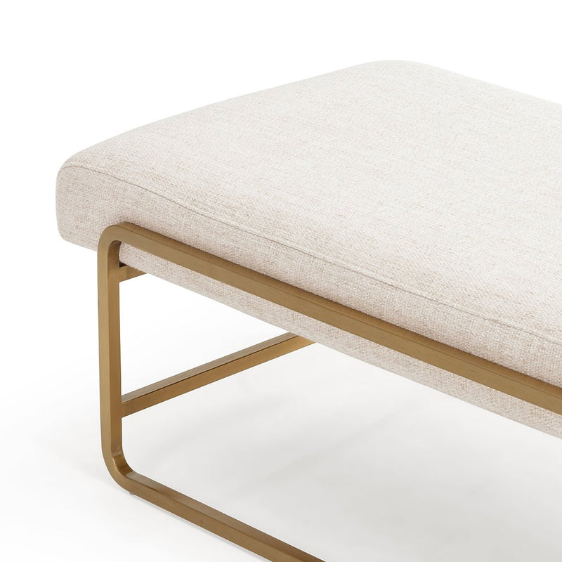 Dramatic bullnose edging meets elegant brass-finished steel framing for fresh, thoughtful balance, while performance-grade upholstered seating delivers a hint of glam and plenty of trend-forward texture. Versatile design makes this sled-style bench ideal in any space.