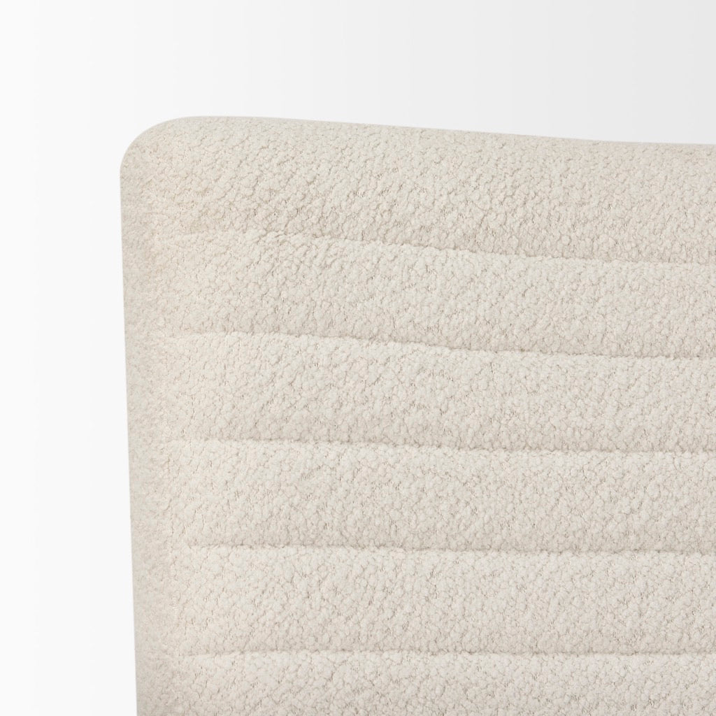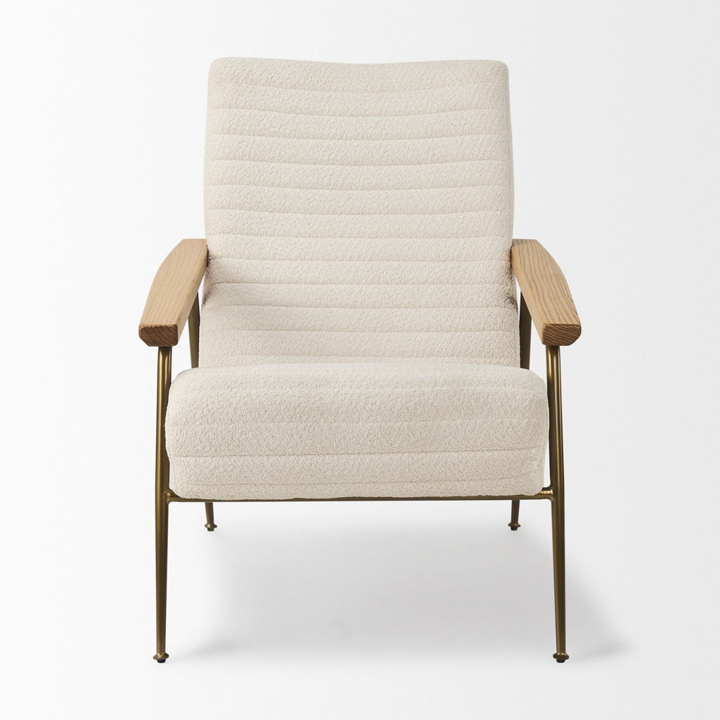 The Grosjean is a premium chair featuring cream colored boucle upholstery.