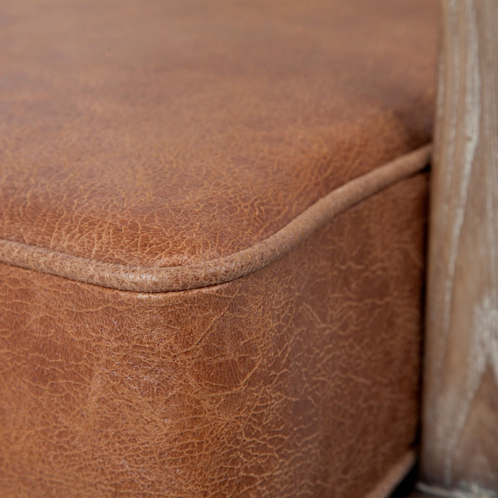 - Fabric & Leather Seating: The Harman, featuring a detached leather seat and a backrest wrapped in plush cream-toned fabric, makes not only for a comfortable seating option but also a visually enticing addition to any living room.