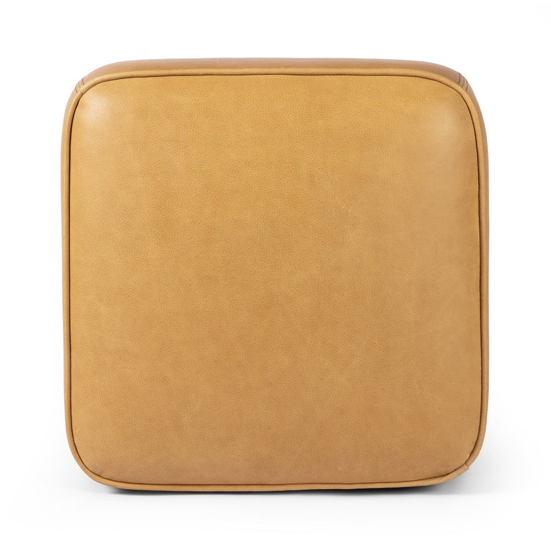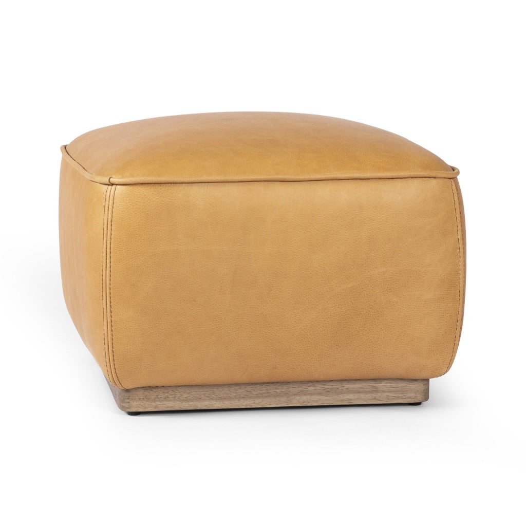Upholstered in a top grain leather paired with a solid brown wood base, this 21" square ottoman can be placed just about anywhere – bringing with it a luxe vibe.