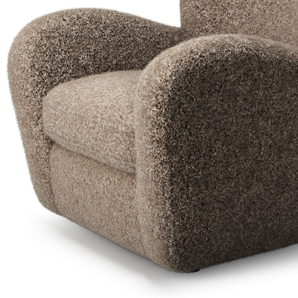 Relax into the curved arms and subtle wingback shape of this classic reading chair. Upholstered in an ethically sourced, taupe shearling for extra comfort and texture. Crafted with S-spring suspension, a loose cushion and hidden legs beneath.