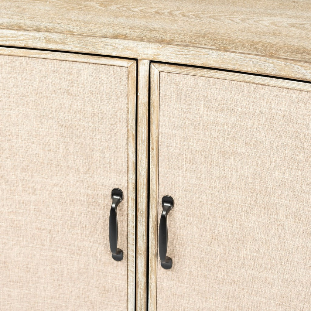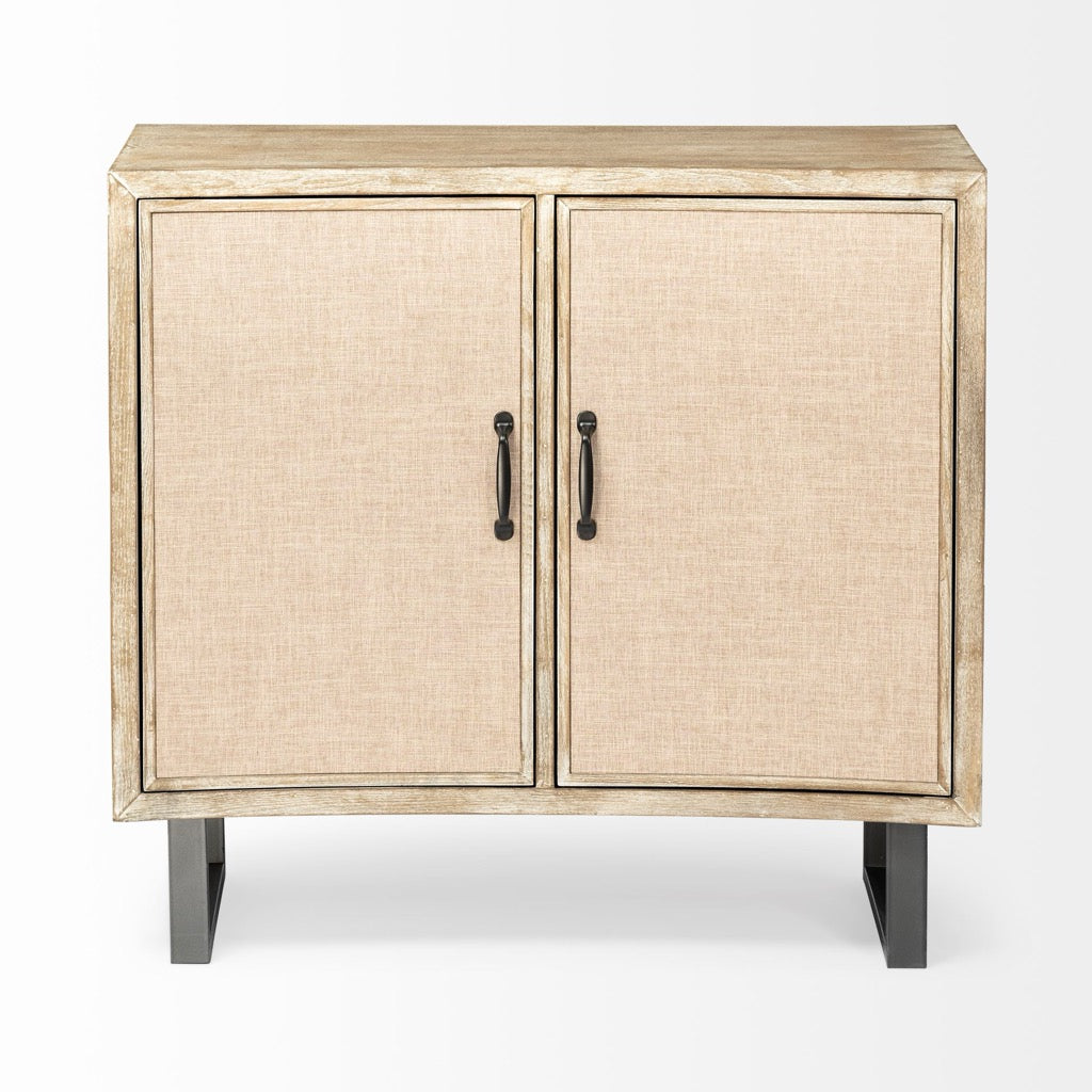 - Wood and Fabric Construction: The Bellefontaine features a natural grain finished fir wood body with two beige fabric covered doors, supported by stylish graphite iron legs.