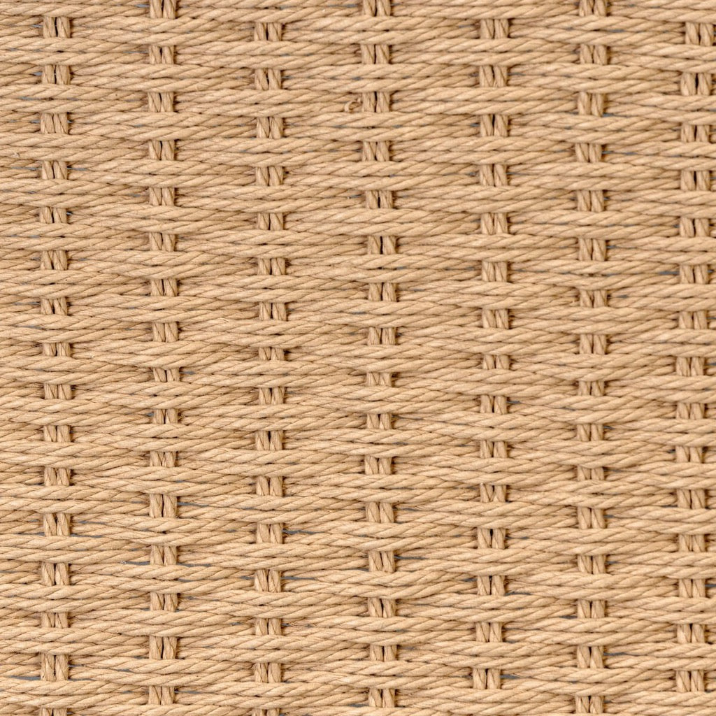 Anchor your space with mixed materials. Made from brown oak, natural paper cord and tempered glass, with shelving for extra storage and display.