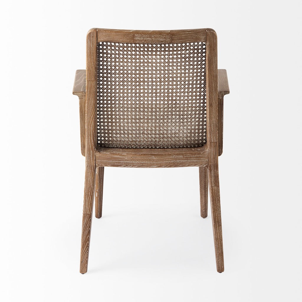 - Light Brown and Cream Finish: A whitewash finish extends over the wooden frame and cane back, bringing out the natural wood grain and adding a sense of depth and texture to the piece, with the slightest hint of rustic charm. The creamy beige fabric blends with the natural tones and helps create a soft, fresh aesthetic.