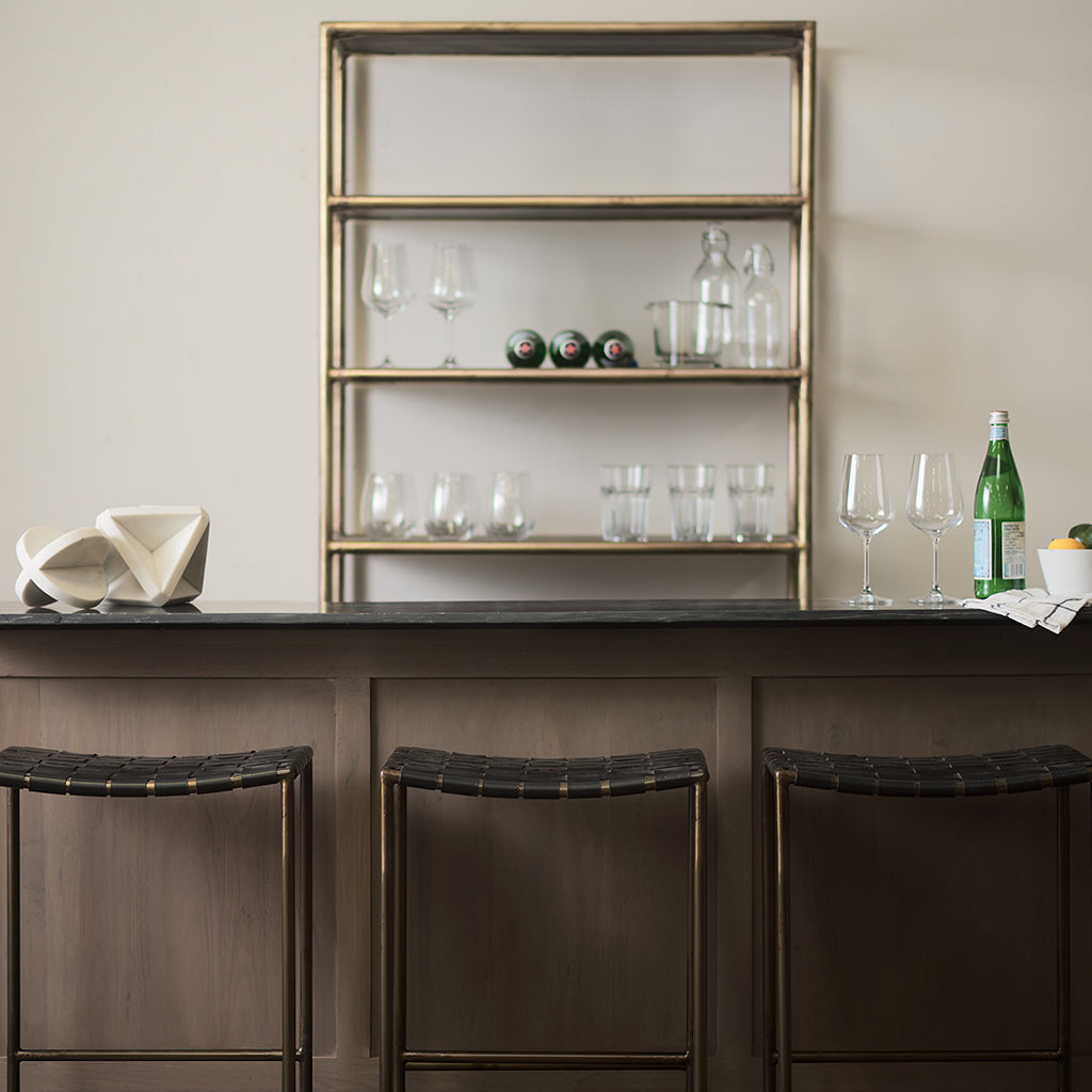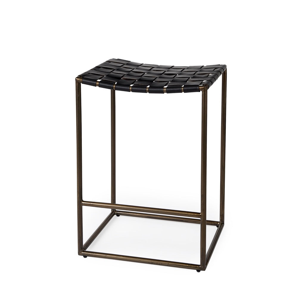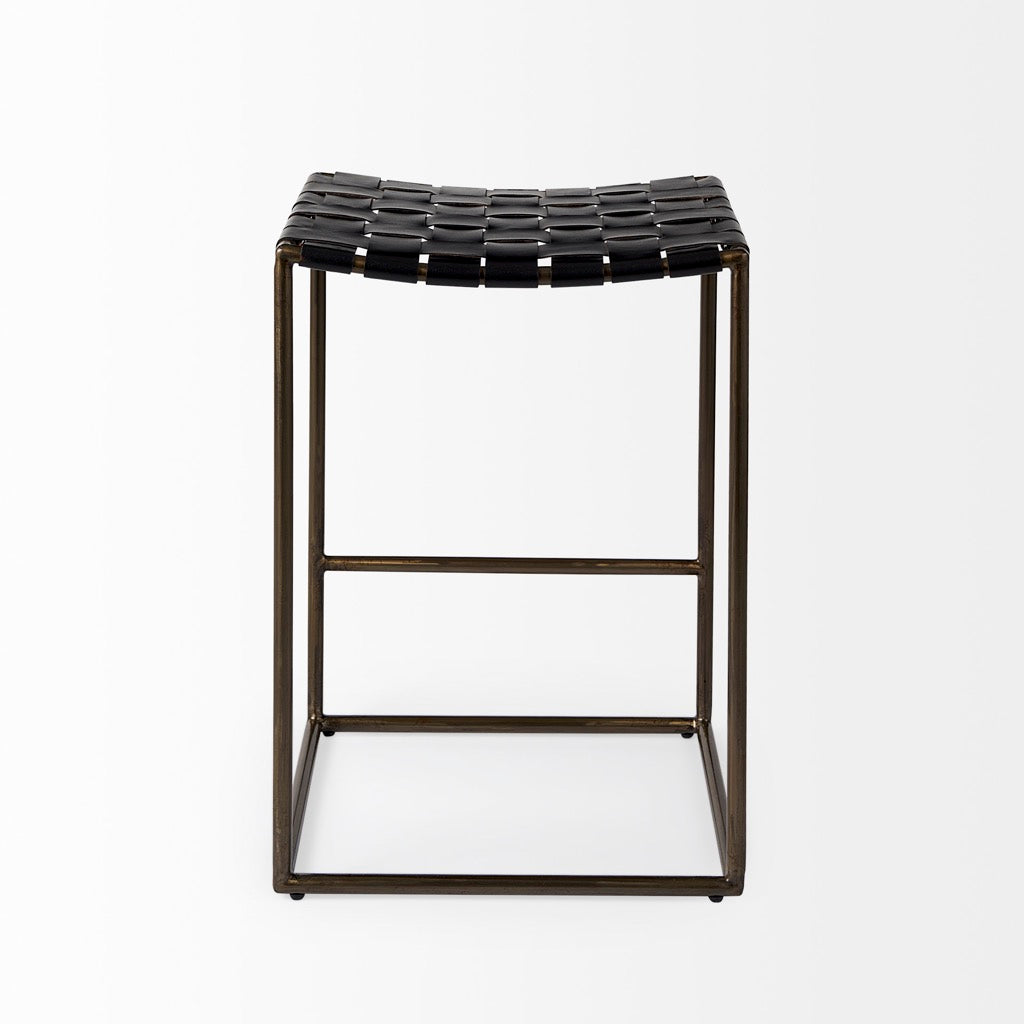 • Woven Leather and Iron Construction: The Clarissa is a high counter stool made from sturdy iron framing and a woven leather seat.