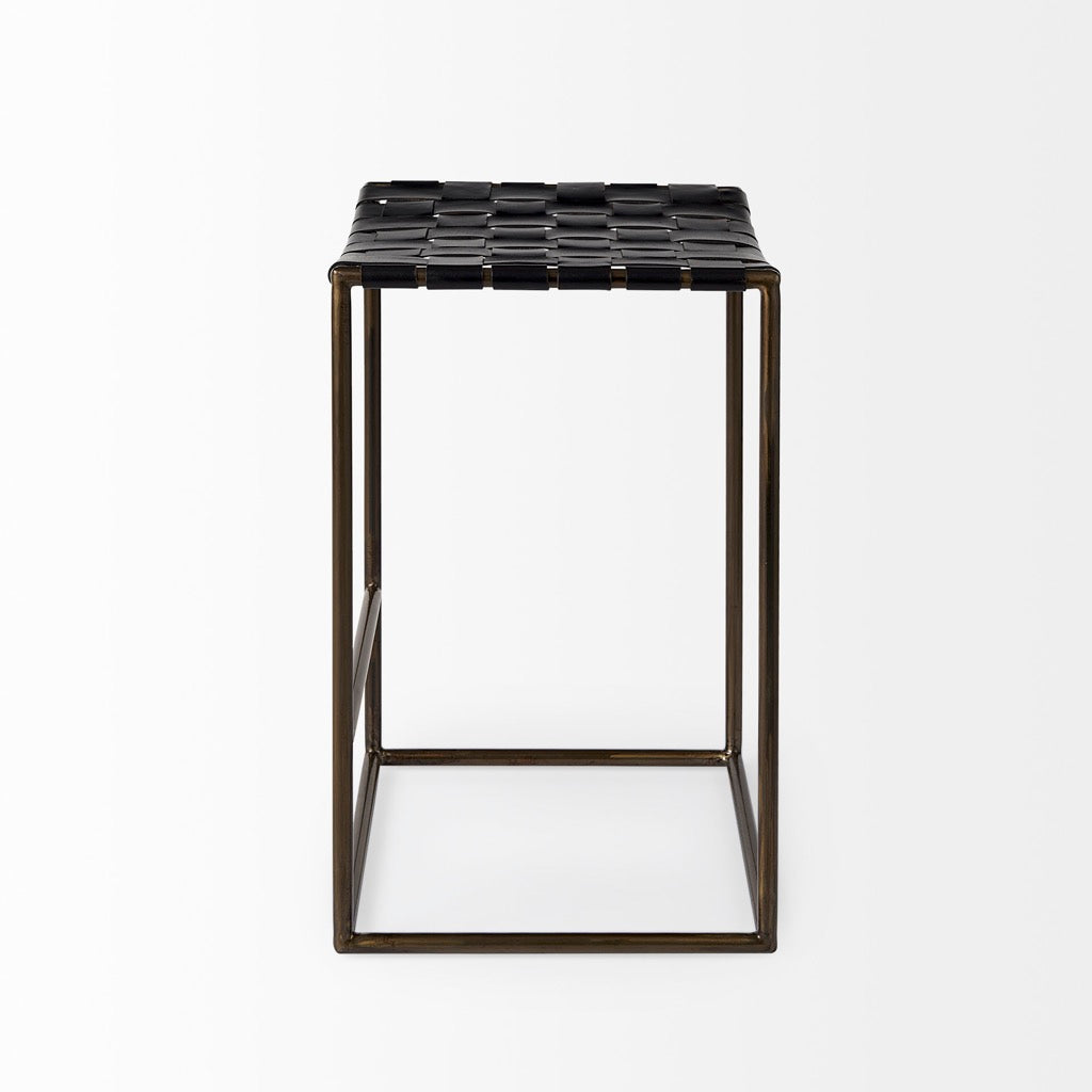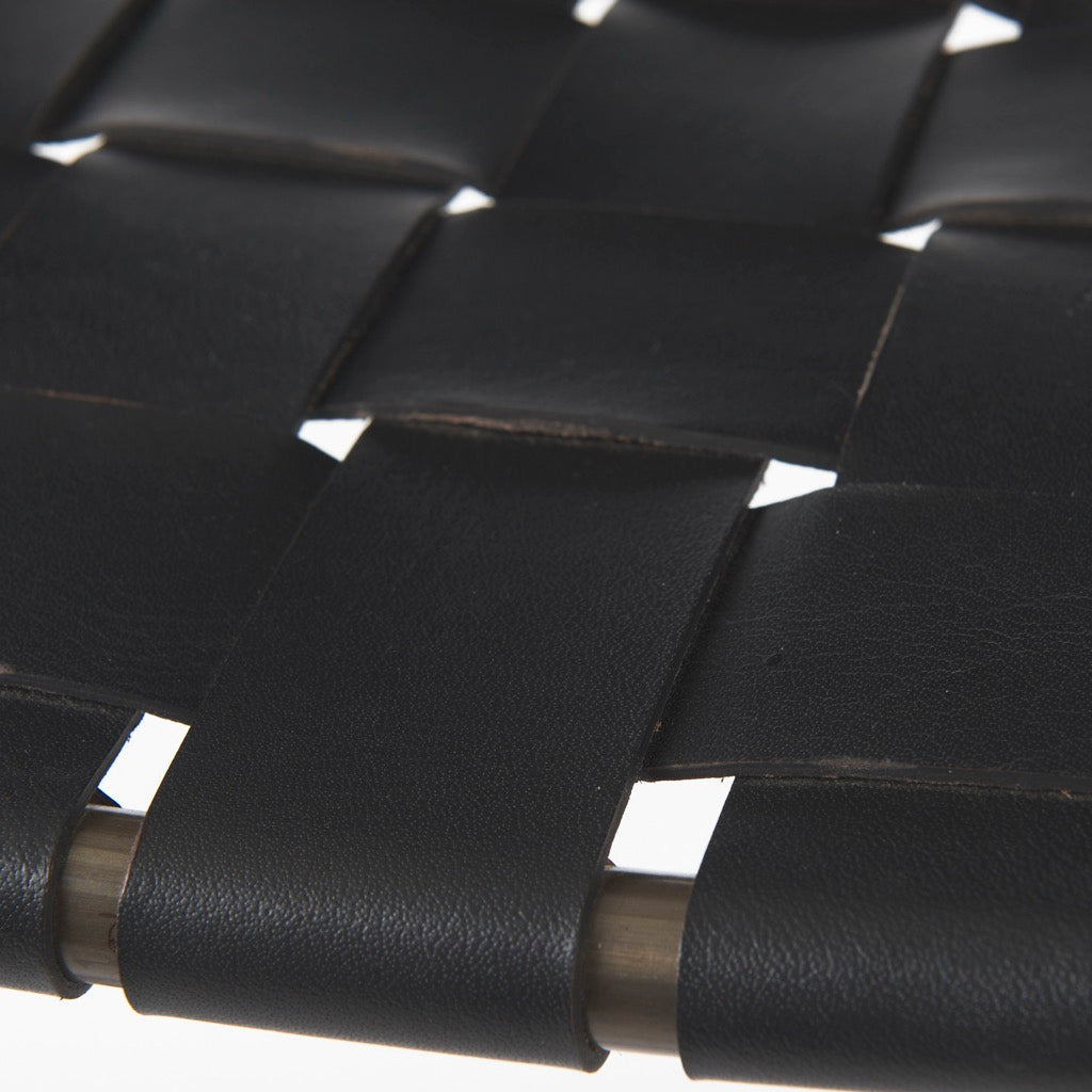 • Dark Metallic Iron: The Clarissa is finished with solid gold-finished metallic iron legs and a true black leather seat that shows off a unique woven formation.