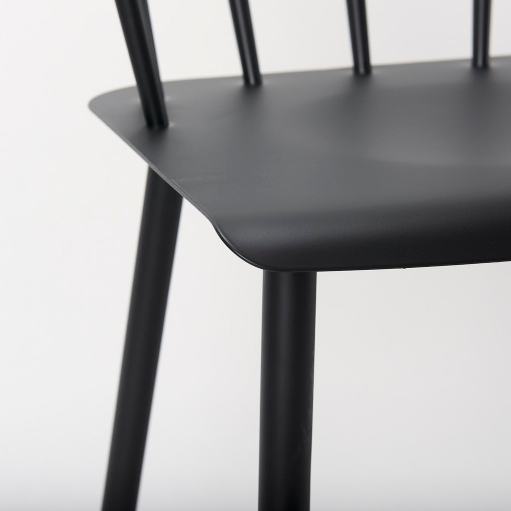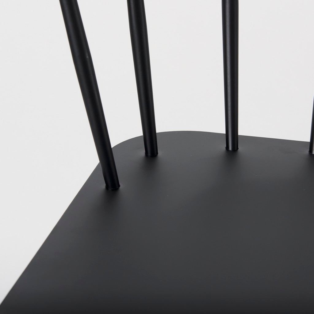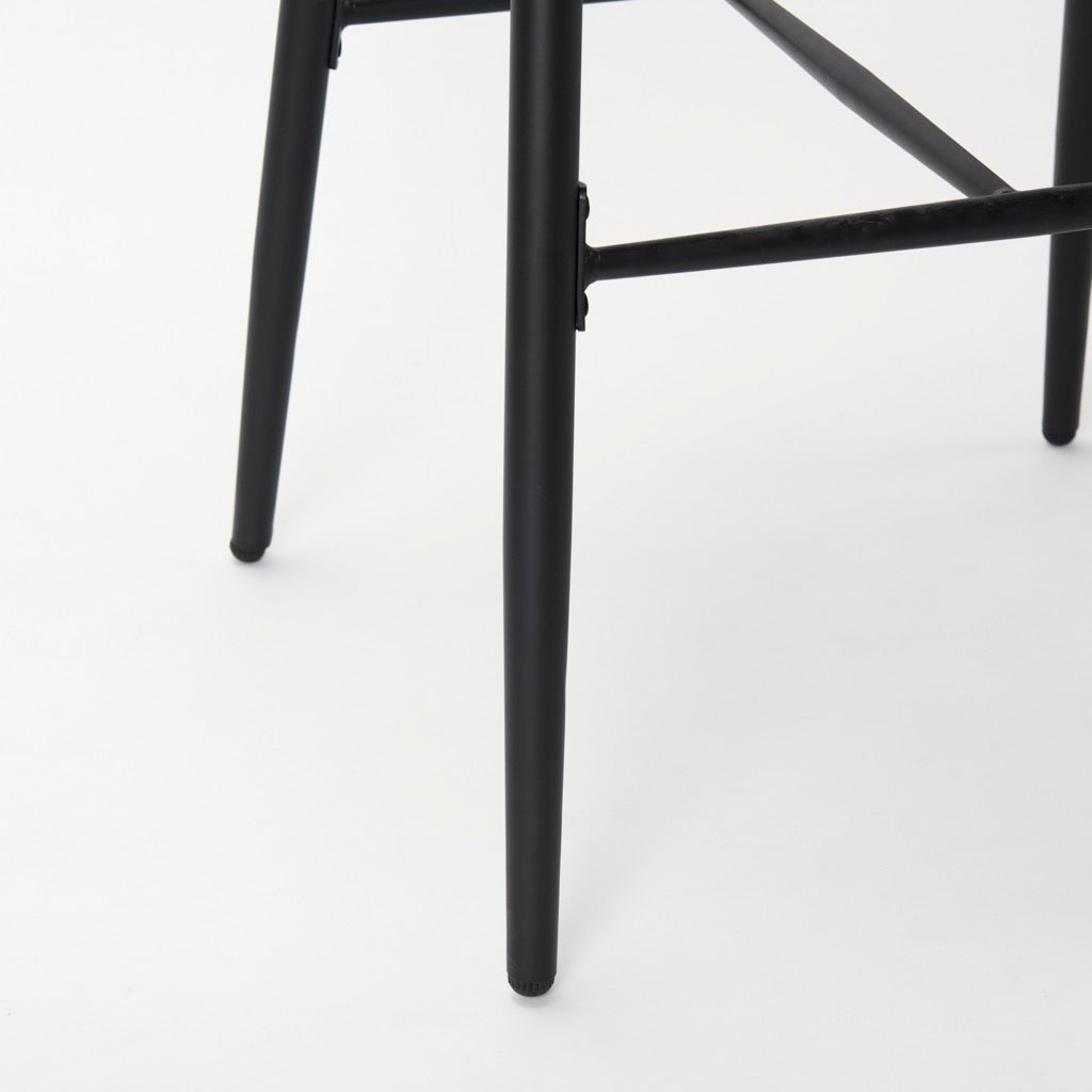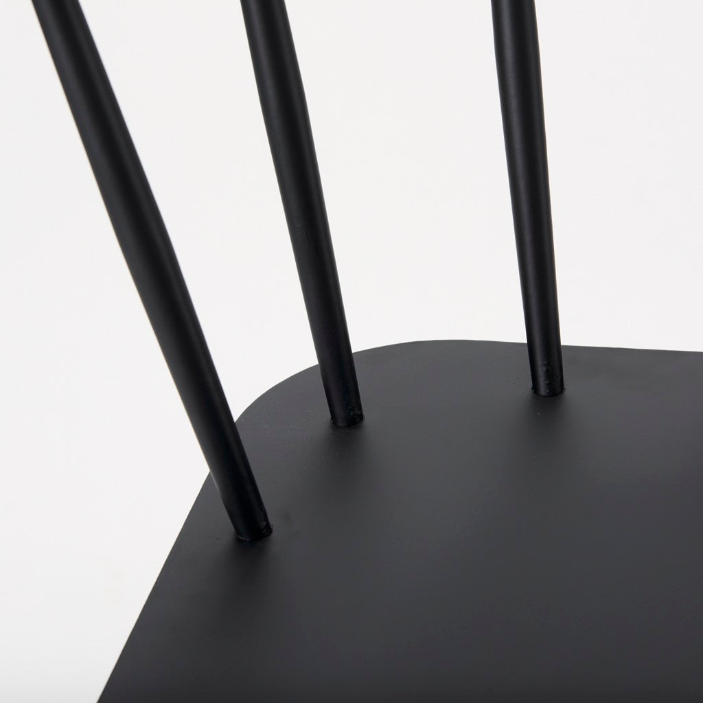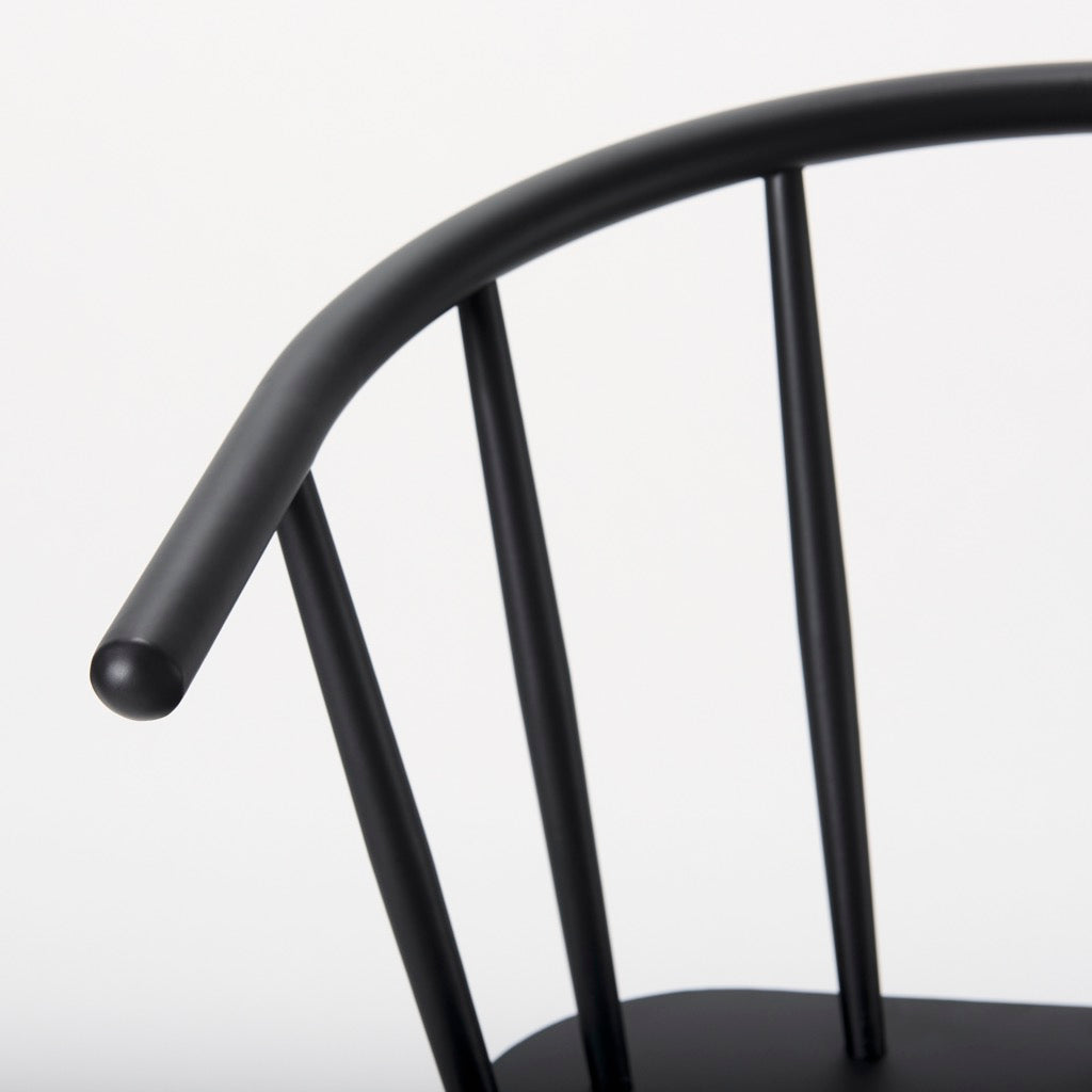 A modern counter or bar stool with a traditional twist, designed in metal and finished with a smooth matte black color.