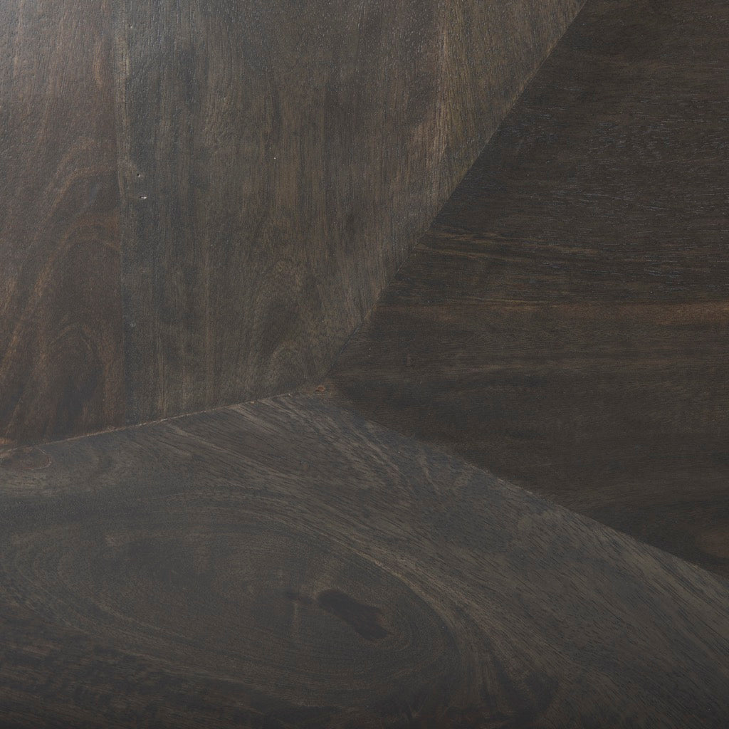 - Solid Wood Construction: Meticulously crafted from dark brown stained Indian mango wood, the Darwin is a substantial piece of furniture and is built to last for years to come. This piece is supported by four, uniquely designed iron legs finished in an antiqued-gold tone that not only add to the visuals of the piece but also contributes to its sturdiness and stability.