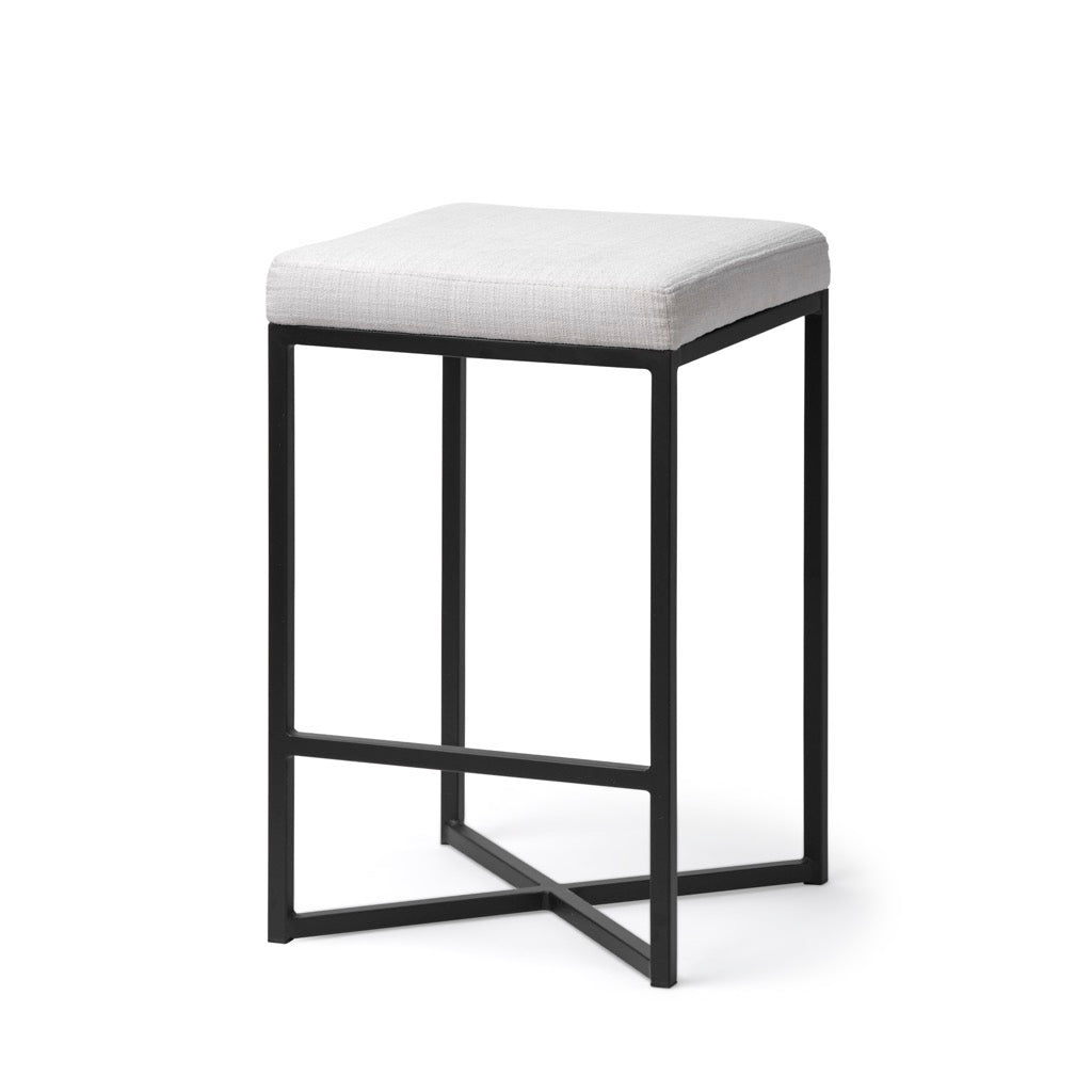 The Frodo is an exuberant bar stool that features a plush, fabric seat perched to a four-legged iron frame.