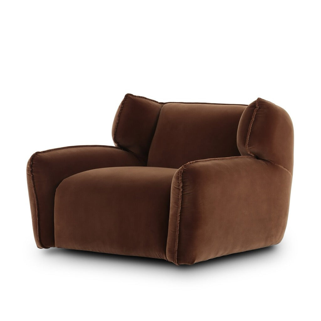 Perfectly oversized for lounging, this reimagined wingback invites you to sink in and unwind, with its exaggerated arms, comfortable pitch and chunky basket weave. A 360-degree swivel base makes it easy to turn toward conversation or take in the view.