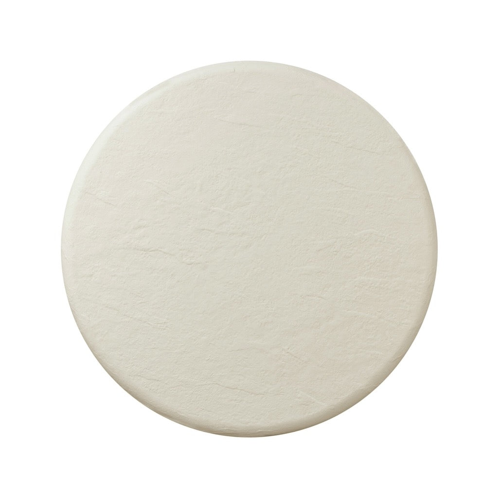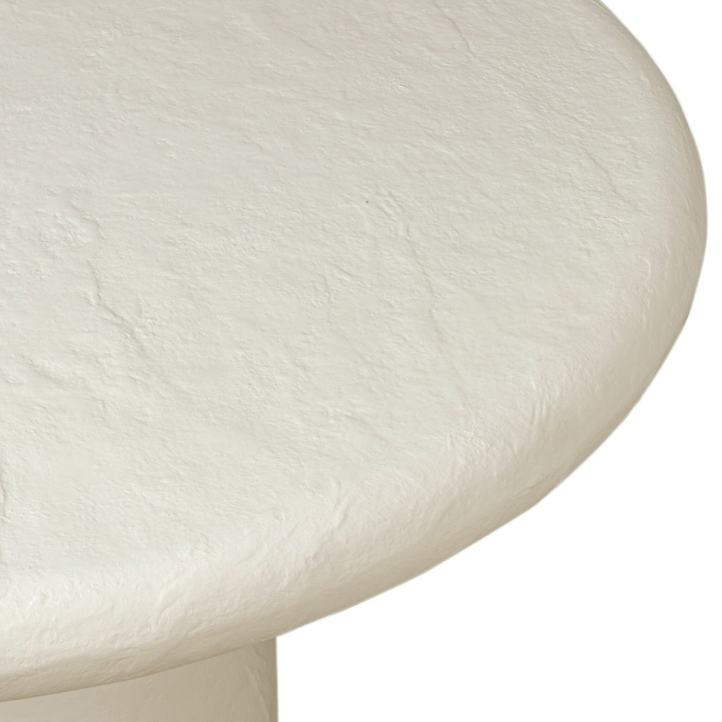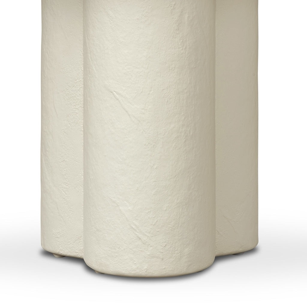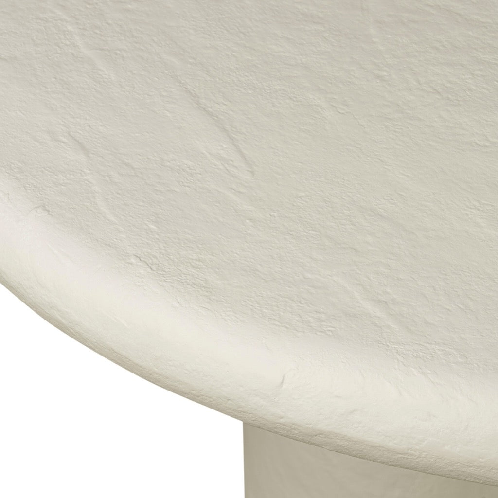 Adobe vibes. Made from white-finished concrete, a clover-shaped base supports a thick-rounded tabletop. Soft yet textured look pairs alongside a wide range of furniture, from natural woods to leather and more.