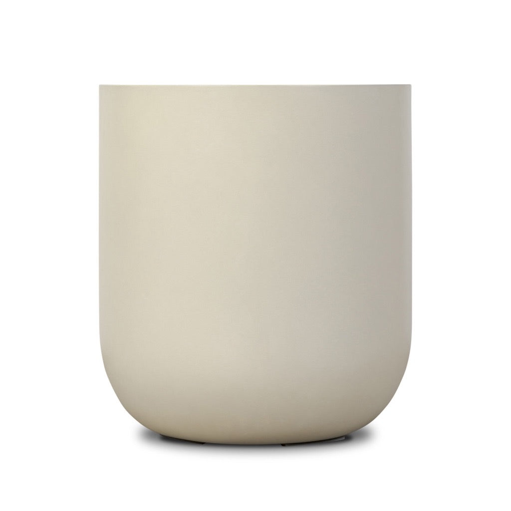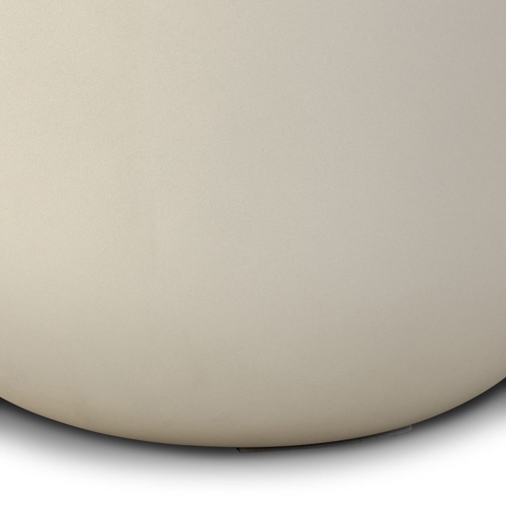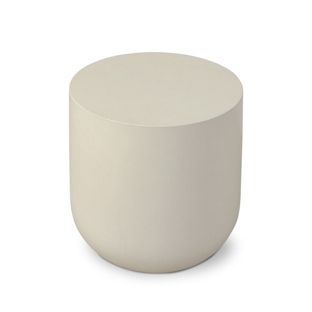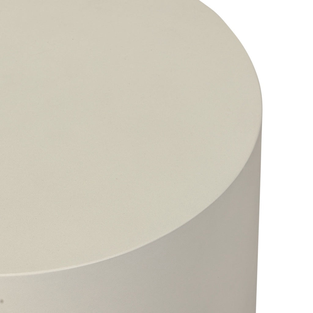 Grey-finished concrete and classic drum shaping make for an effortlessly cool end table, indoors or out. Cover or store inside during inclement weather and when not in use.