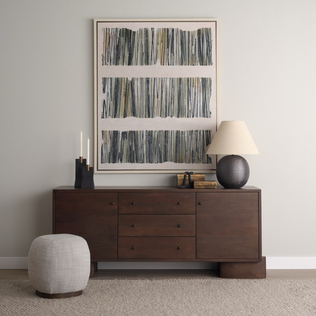 - Contemporary Design: Its unique oval feet extend beyond the body of the sideboard, adding a sculptural, contemporary touch.
