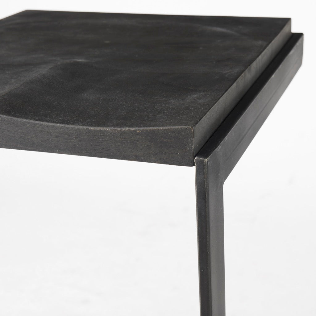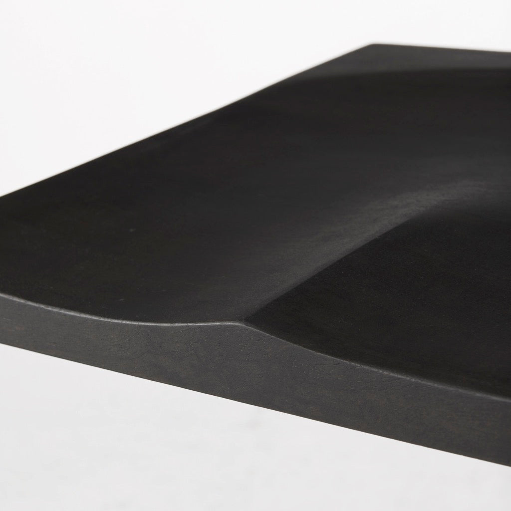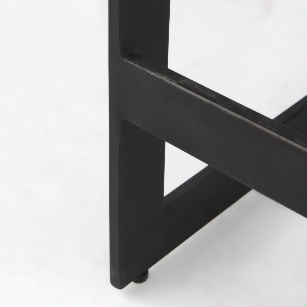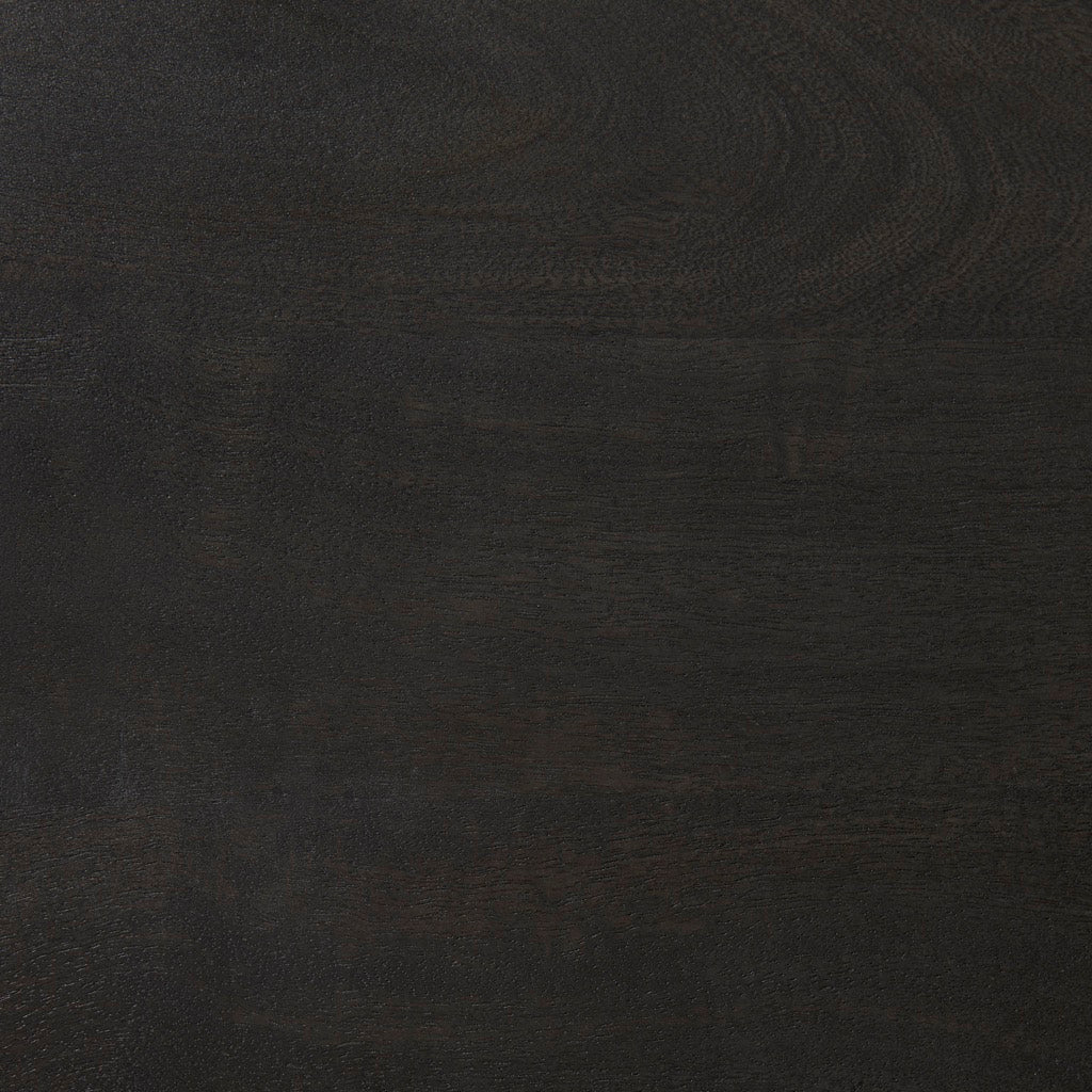 - Black Finish: The wood is smooth textured in a black-stained finish with warm, brown undertones. The iron base features an unfussy, matte black finish.