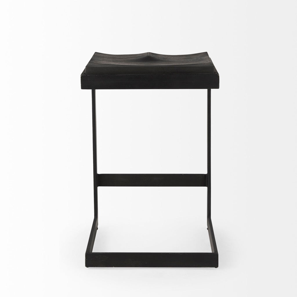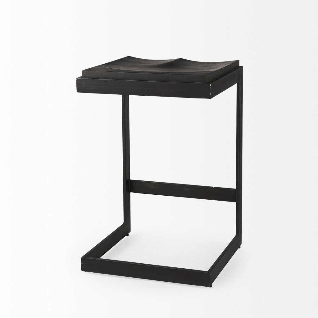 - Solid Wood and Metal Construction: This modern counter stool features a Mango wood seat that rests on an iron frame in a C-shape design. A footrest is neatly incorporated into the base and the seat is gracefully indented to provide additional comfort, while keeping with its minimal aesthetic.
