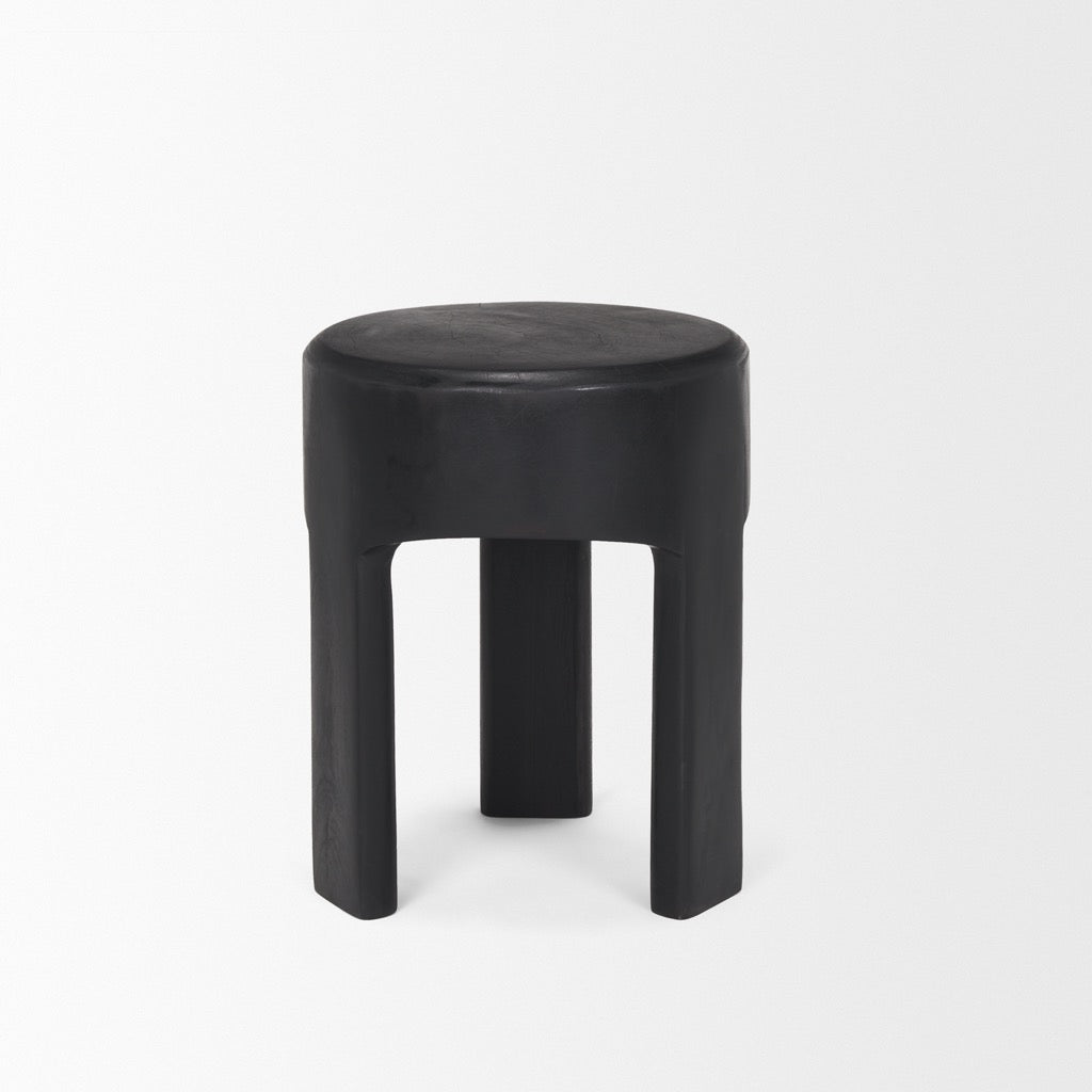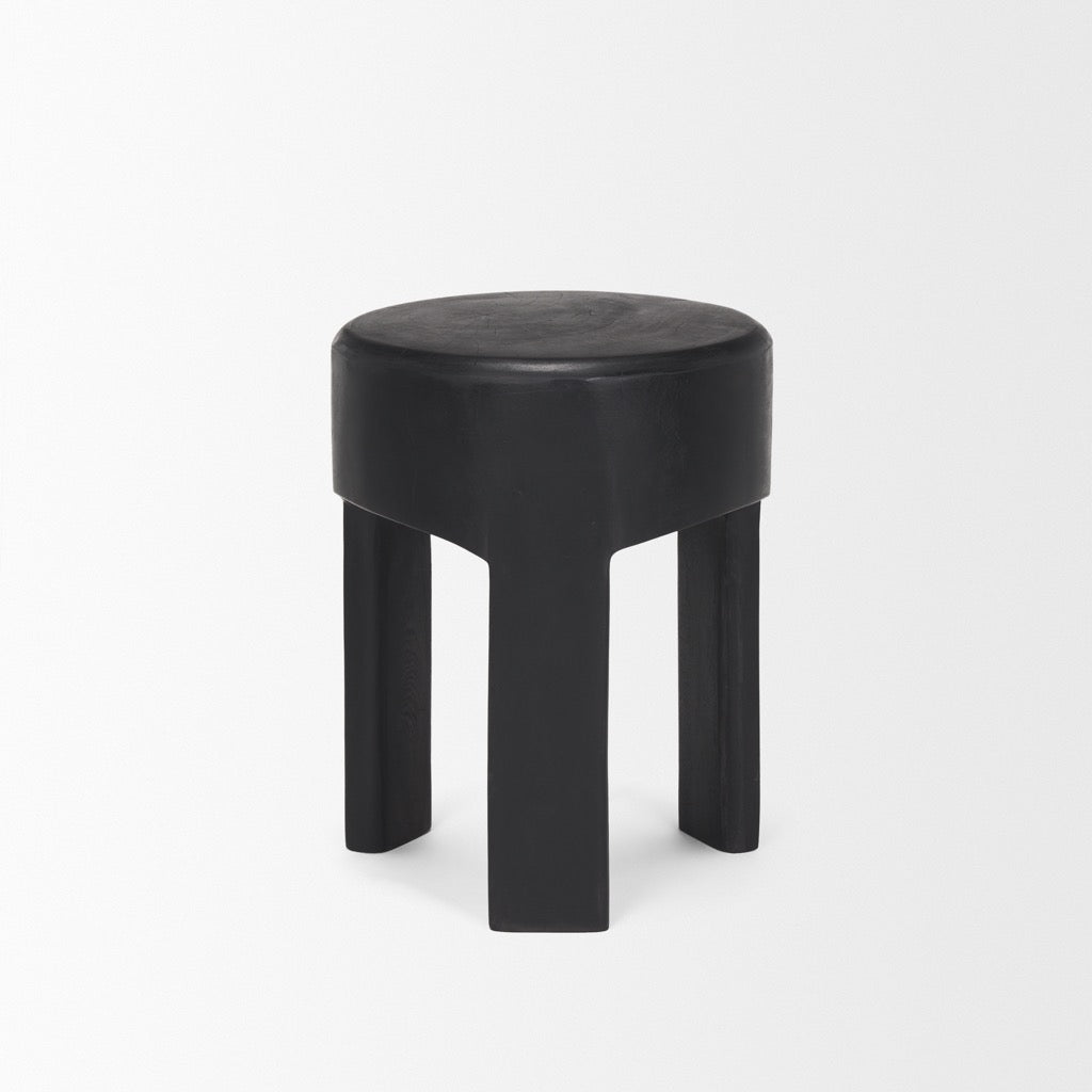 Riya is a handcrafted stool that has been carved from solid neem wood and finished in a black stain.