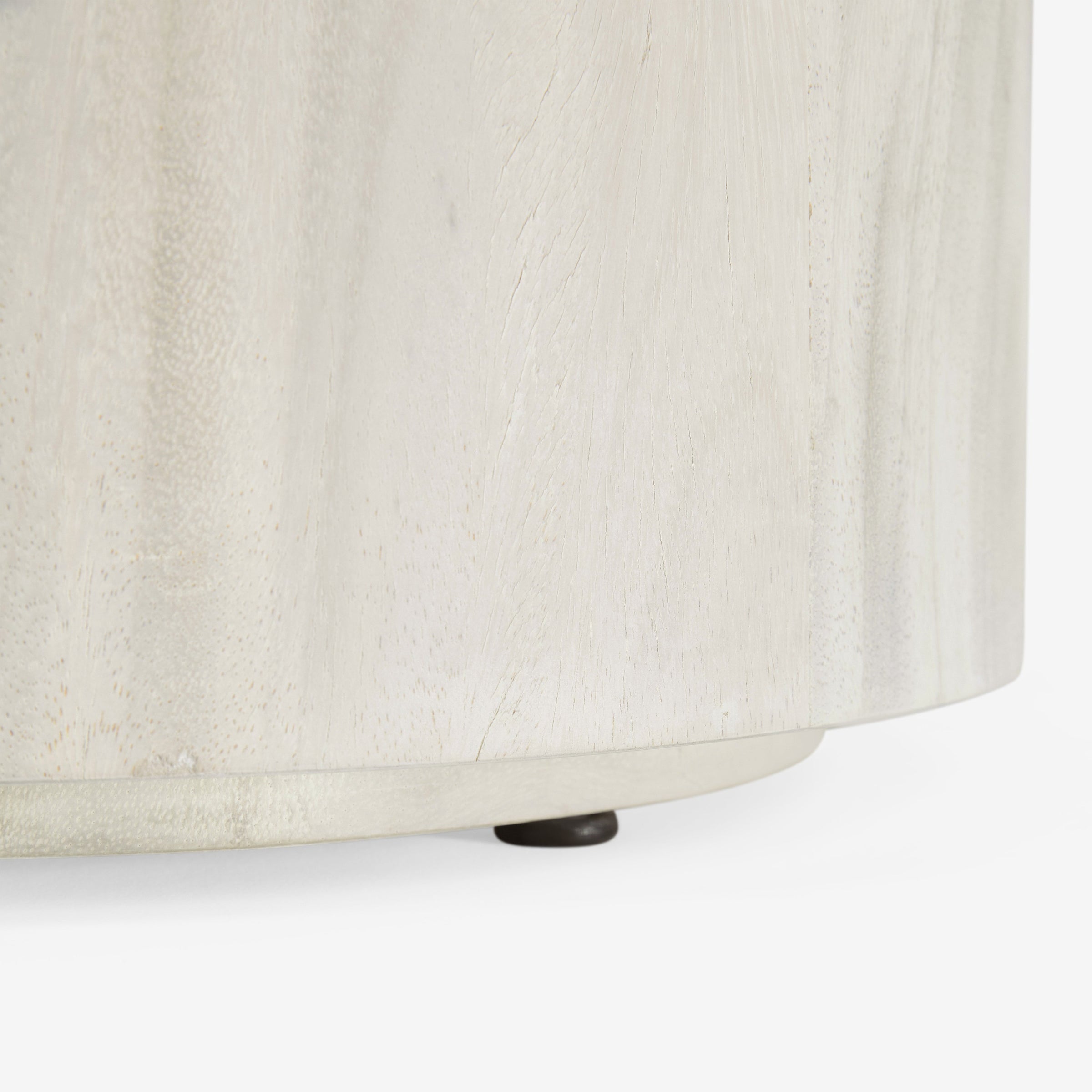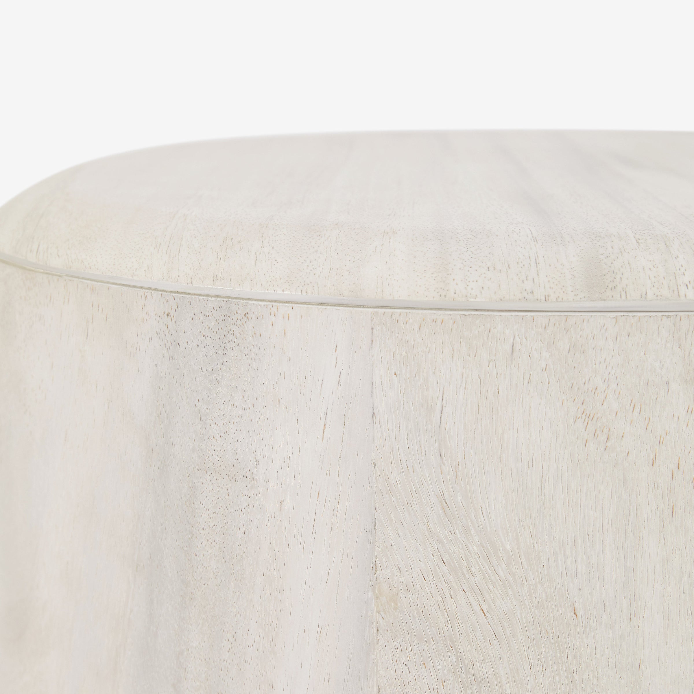 The Santiago tables are designed as bold island-like shapes, with a recessed plinth giving them a floating appearance. The beveled wood top highlights the tables organic lines.