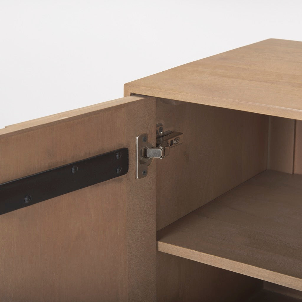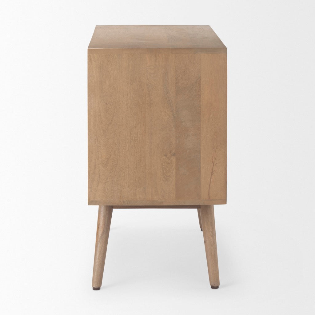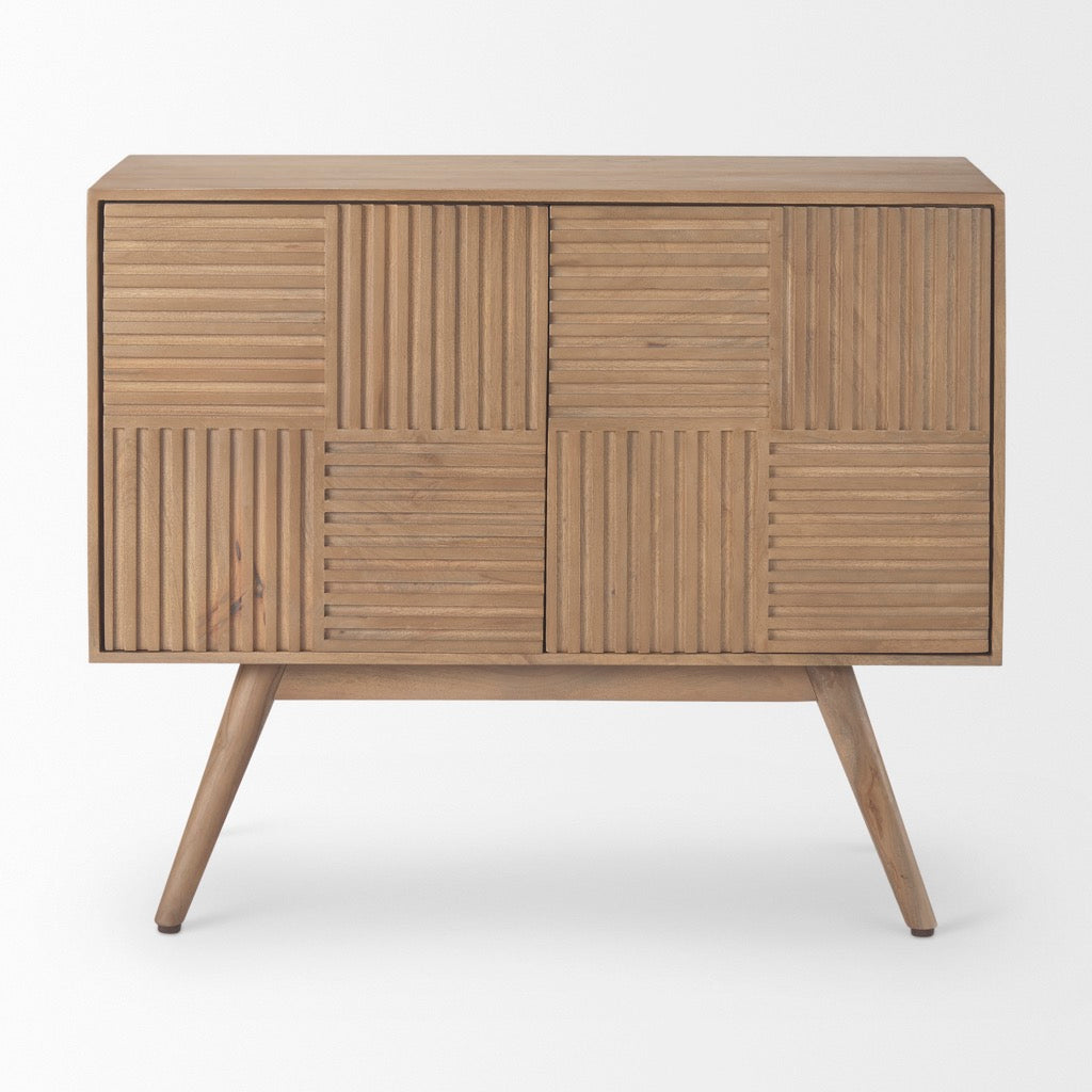 A stunning, contemporary accent cabinet, made from solid mango wood, and features a checkered pattern and splayed legs