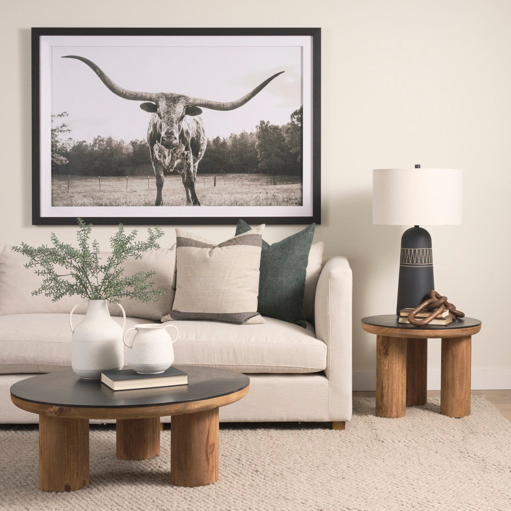 - Rustic Meets Modern: The rusticity of the wood is juxtaposed by a sleek, smooth, modern black tabletop.