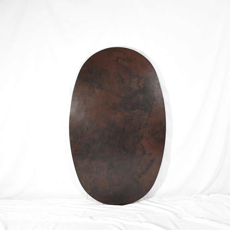 Use our artisan crafted Hammered Copper Table Tops in the Oval shape to create your own beautiful style within your home. These tops look great, are highly durable and are fully customizable. Supply your own base or choose from one of our unique iron bases to pair the oval top with.