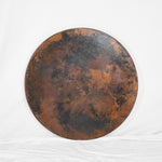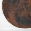 Each of our copper tabletops is a completely unique creation. Due to the process of creating the artisan patina on the copper, each tabletop will have a different variation of lights and darks. The "Dark Natural" patina shown here is created using a mixture of minerals and open wood-bark fire. It is this mixture of minerals, flame, heat, smoke and ash that create the unique variations in color that you see. It is then aged to darken the natural finish even further. The colors are consistent, however the patterns and variances in light and dark will be unique. The 'Dark Natural' patina is a darker and more brown toned version of our best selling 'Natural w/ Spots' patina.