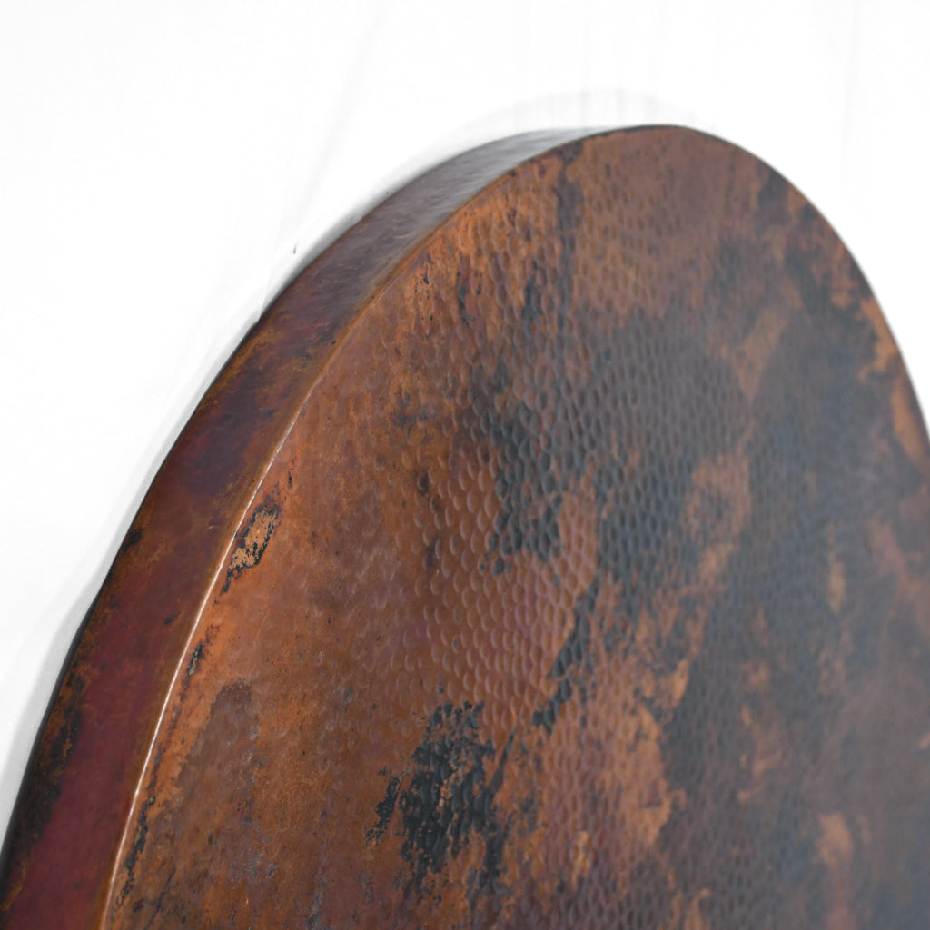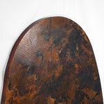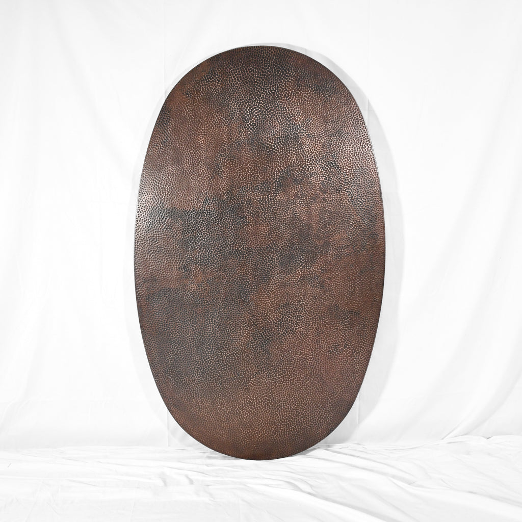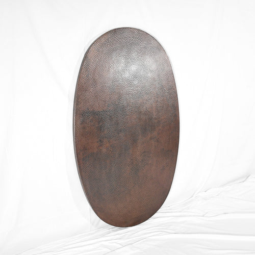 Use our artisan crafted Hammered Copper Table Tops in the Oval shape to create your own beautiful style within your home. These tops look great, are highly durable and are fully customizable. Supply your own base or choose from one of our unique iron bases to pair the oval top with.