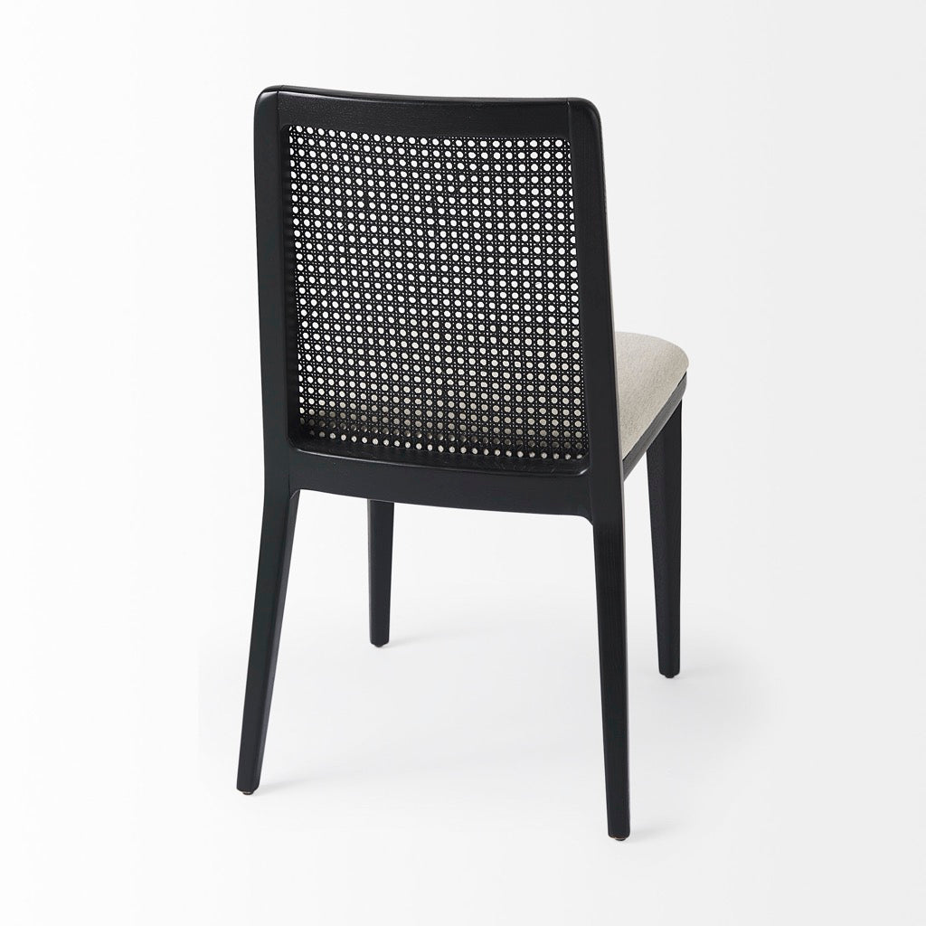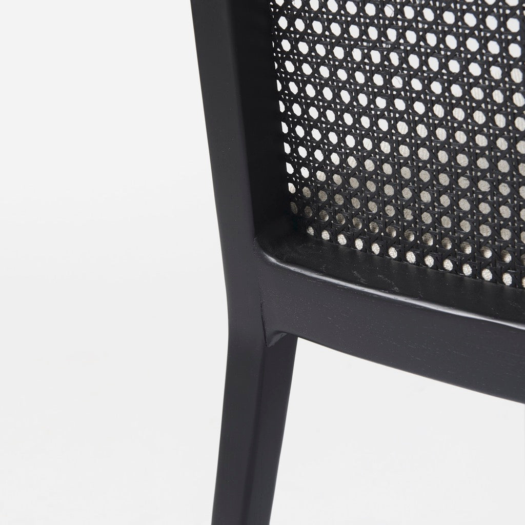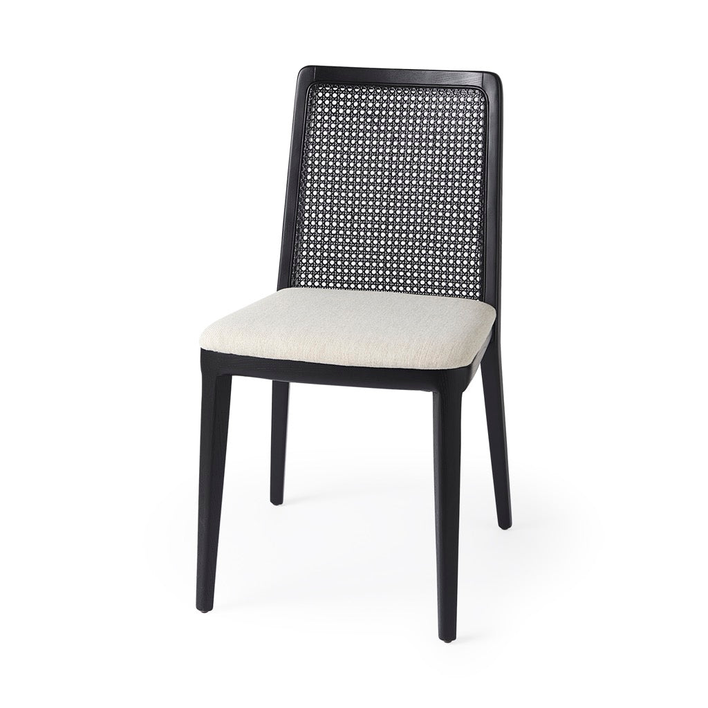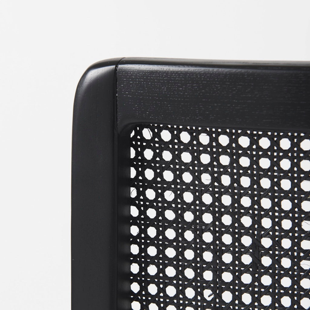 - Black and Cream Finish: A black painted finish, spanning the wooden frame and cane back, lends a modern edge, while the creamy beige cushion softens the look and conveys a sense of comfort.