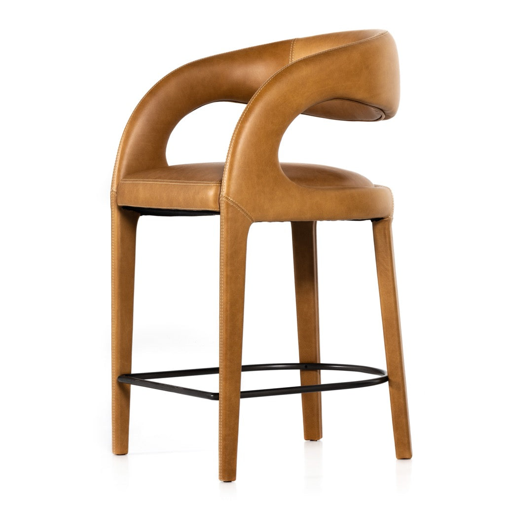 Strike a pose. Curved and finely sculpted, butterscotch top-grain leather exclusive to Four Hands makes for a shapely addition to the well-styled bar or kitchen counter.
