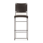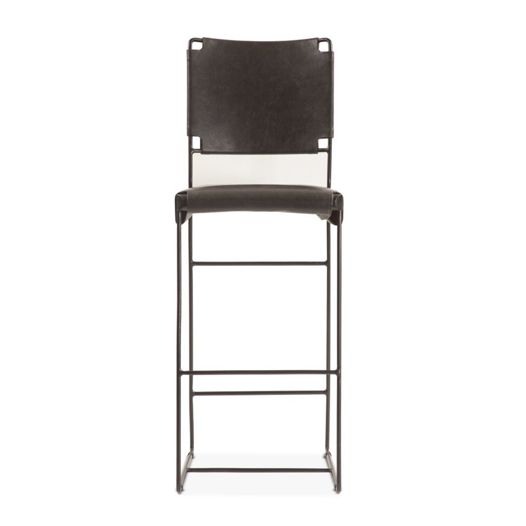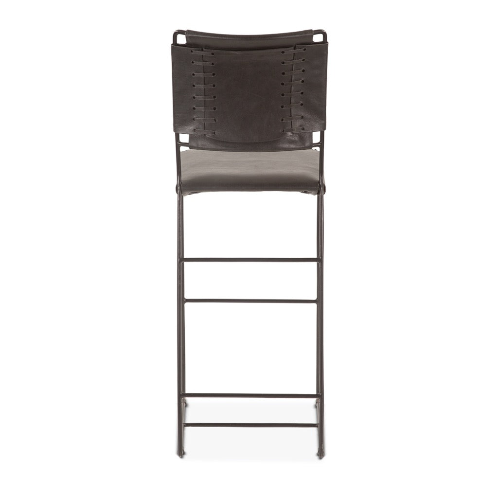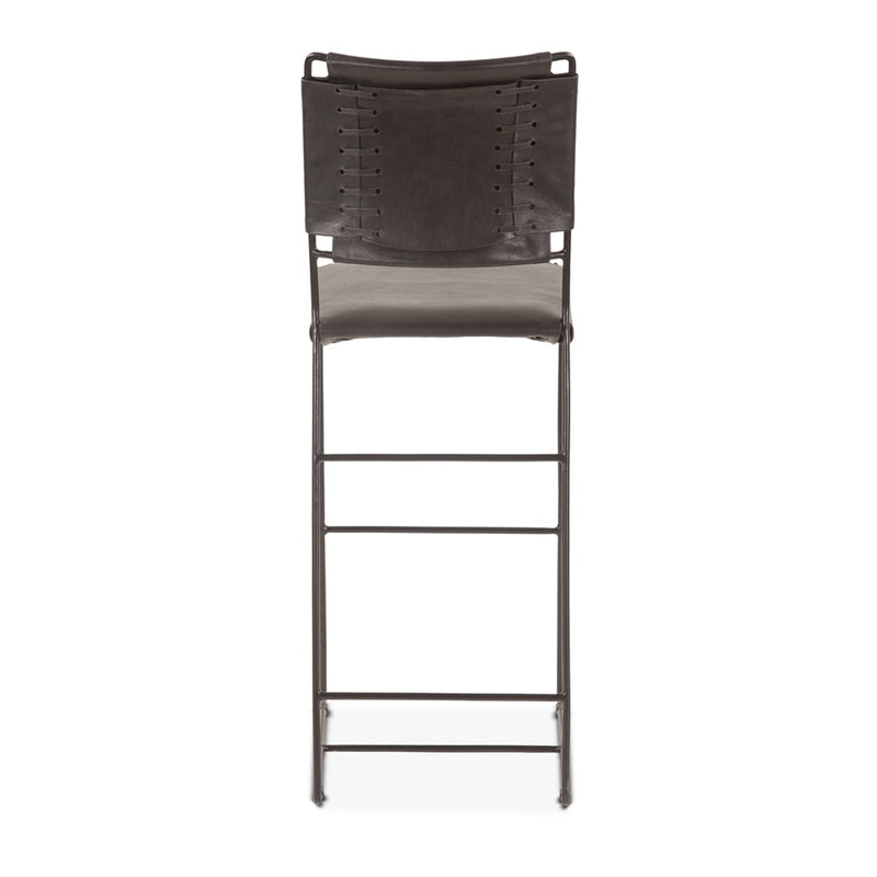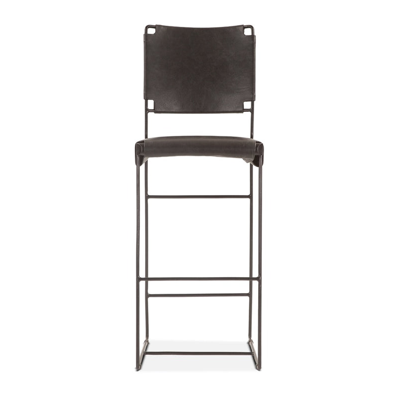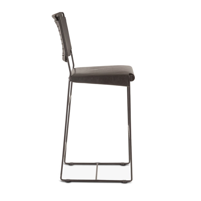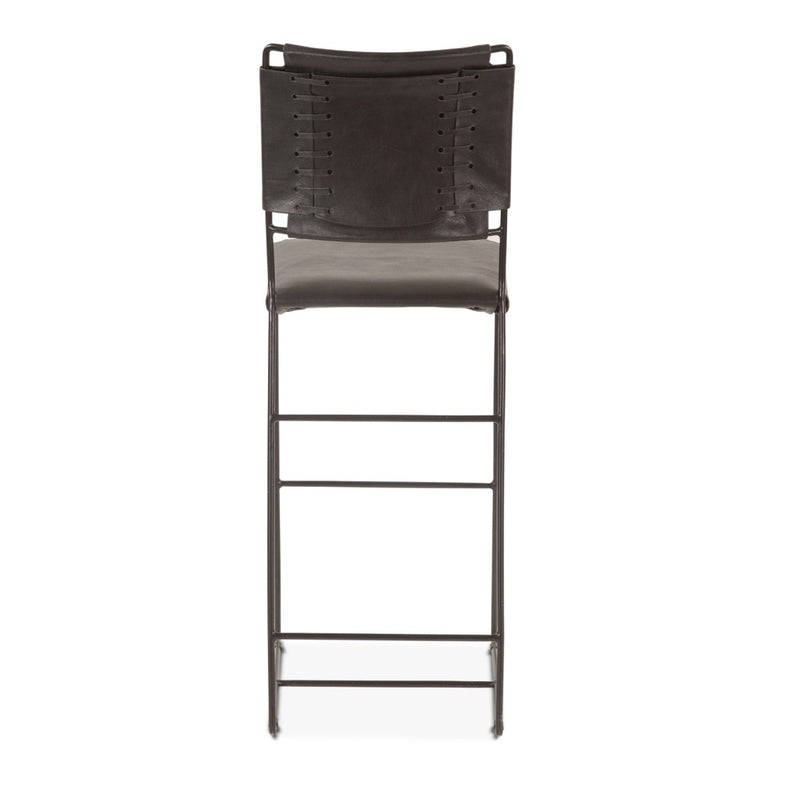 The New York Stool features black buffalo leather upholstery with distinctive braided detailing on the back and sturdy powder-coated black iron legs. Combining industrial style with refined craftsmanship, it’s perfect for trade, designers, and wholesale retailers.