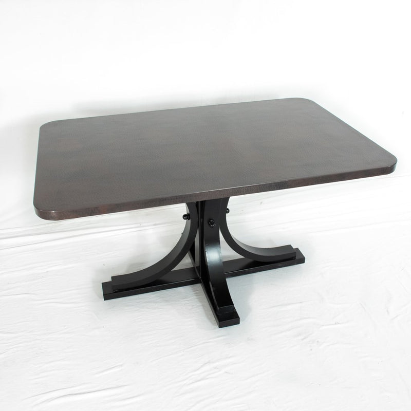 Our versatile Vestal copper and iron dining table continues to evolve and find new ways to fit into your home. We have modified the base to make it more accommodating than ever. The rectangle Vestal copper dining table maximizes your seating while leaving ample room for your guests and their legs. The hand-crafted quality and beauty of this design will be sure to spark conversations and draw compliments. Choose from three pre-determined sizes or customize your own.