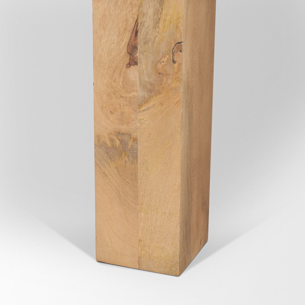- Materials: Crafted out of solid mango wood and finished in a soothing neutral light brown stain with subtle white pickling.