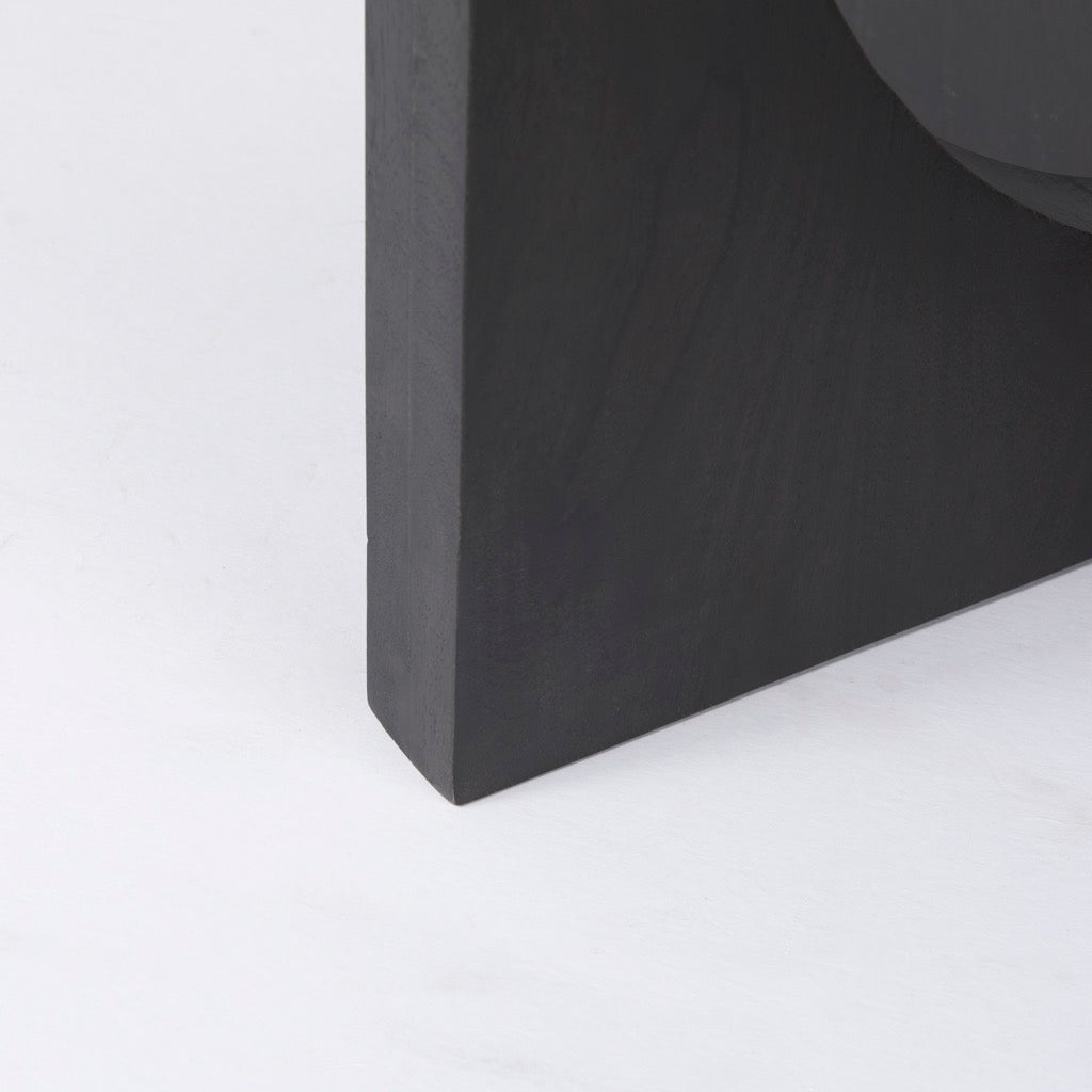 - Geometric Base: The solid wood top is braced by a unique and fun geometric designed pedestal that provides visual interest and a little bit of spice to a space.