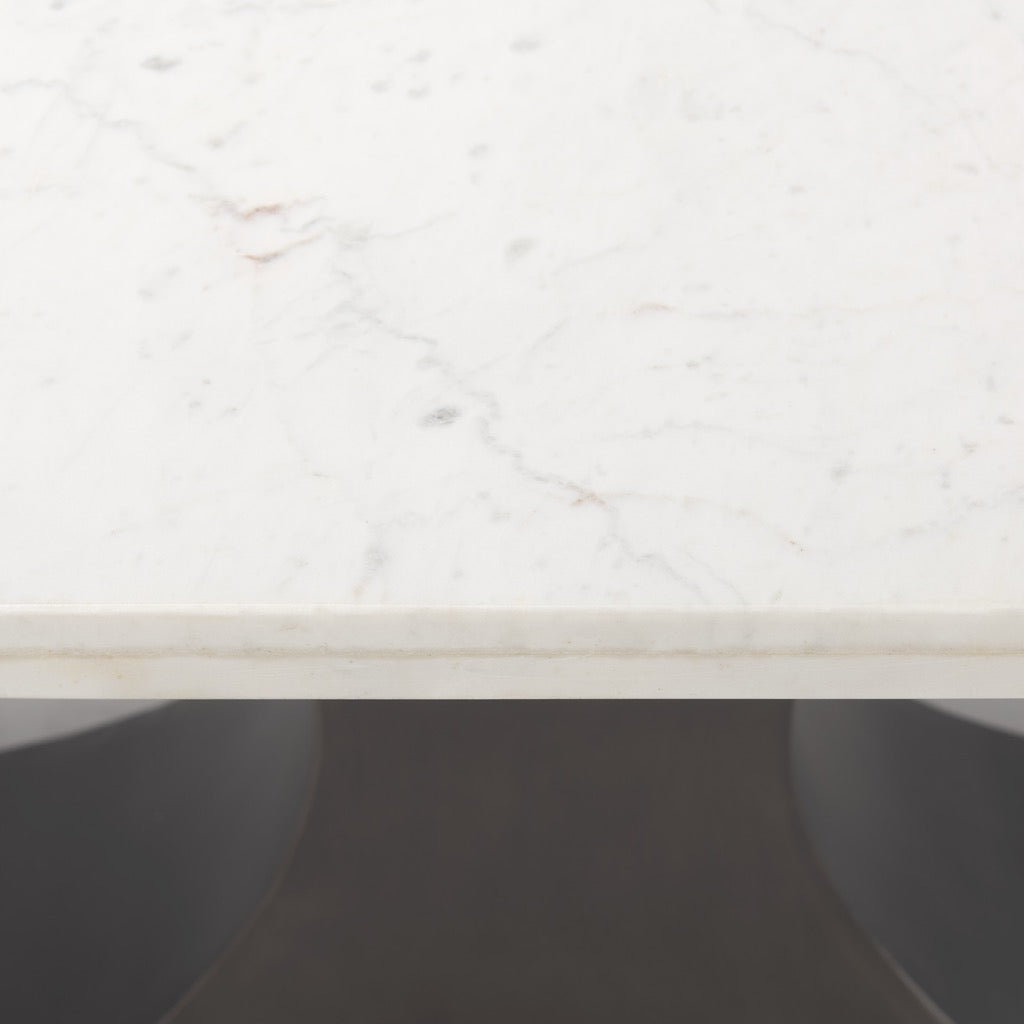 - Construction: A quality and sturdy dining table constructed with an iron metal base supporting the marble tabletop.