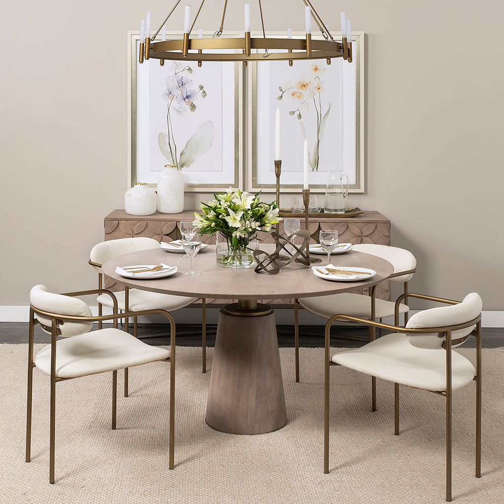 - 54" Round Dining Table: Featuring a top that measures 54" in diameter, the Maxwell comfortably caters to a party of four and guarantees a sublime dining experience.