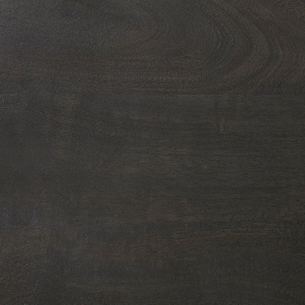 - Dark Brown and Black Finish: The smooth, dark brown wood displays cool undertones with soft, bluish-gray highlights, while hints of gold show through the iron rod's painted black finish.
