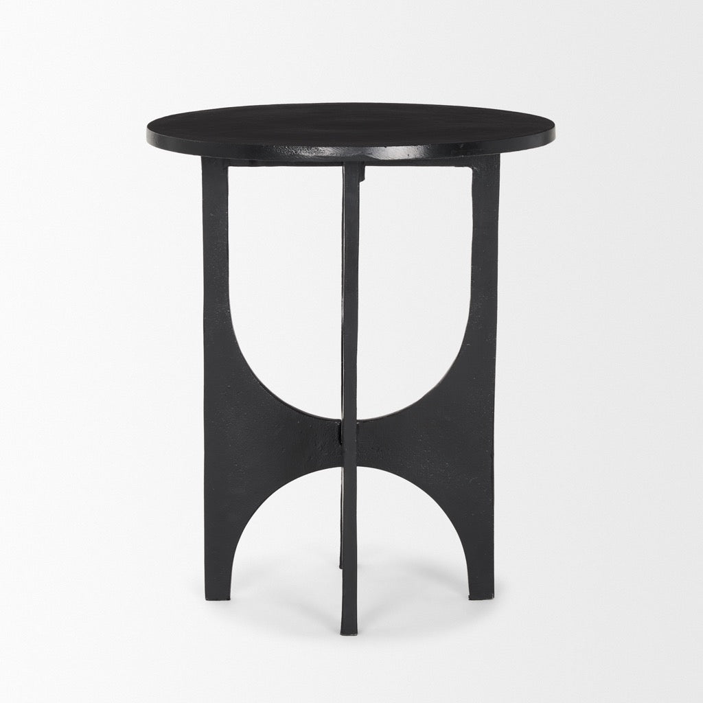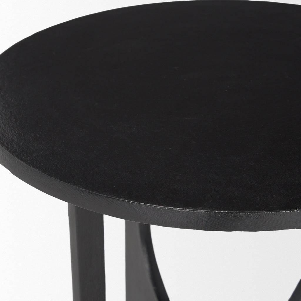 The Sobi Accent Table is constructed from cast metal with a textured black finish.