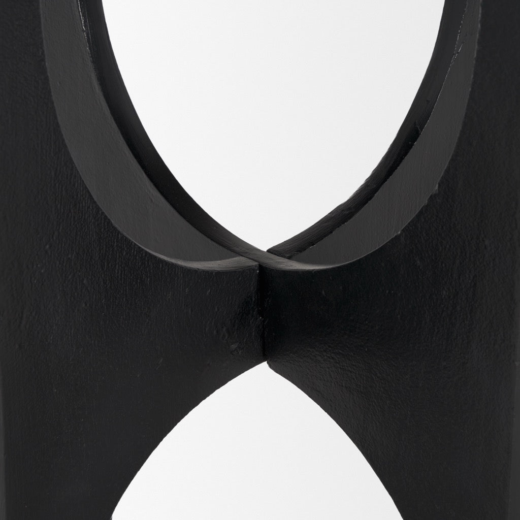 - Textured Black Metal: The smooth stippled textured matte black finish adds another dimensional layer to this textured metal accent table.