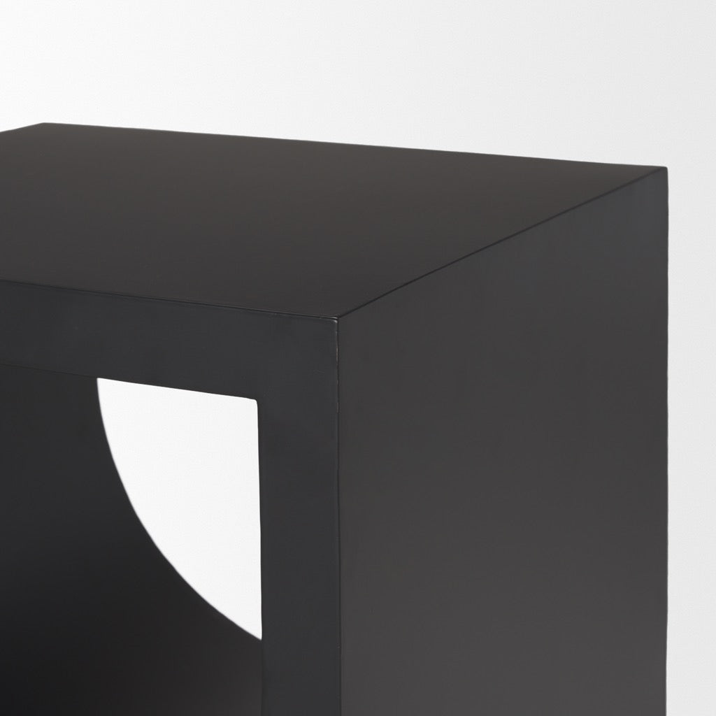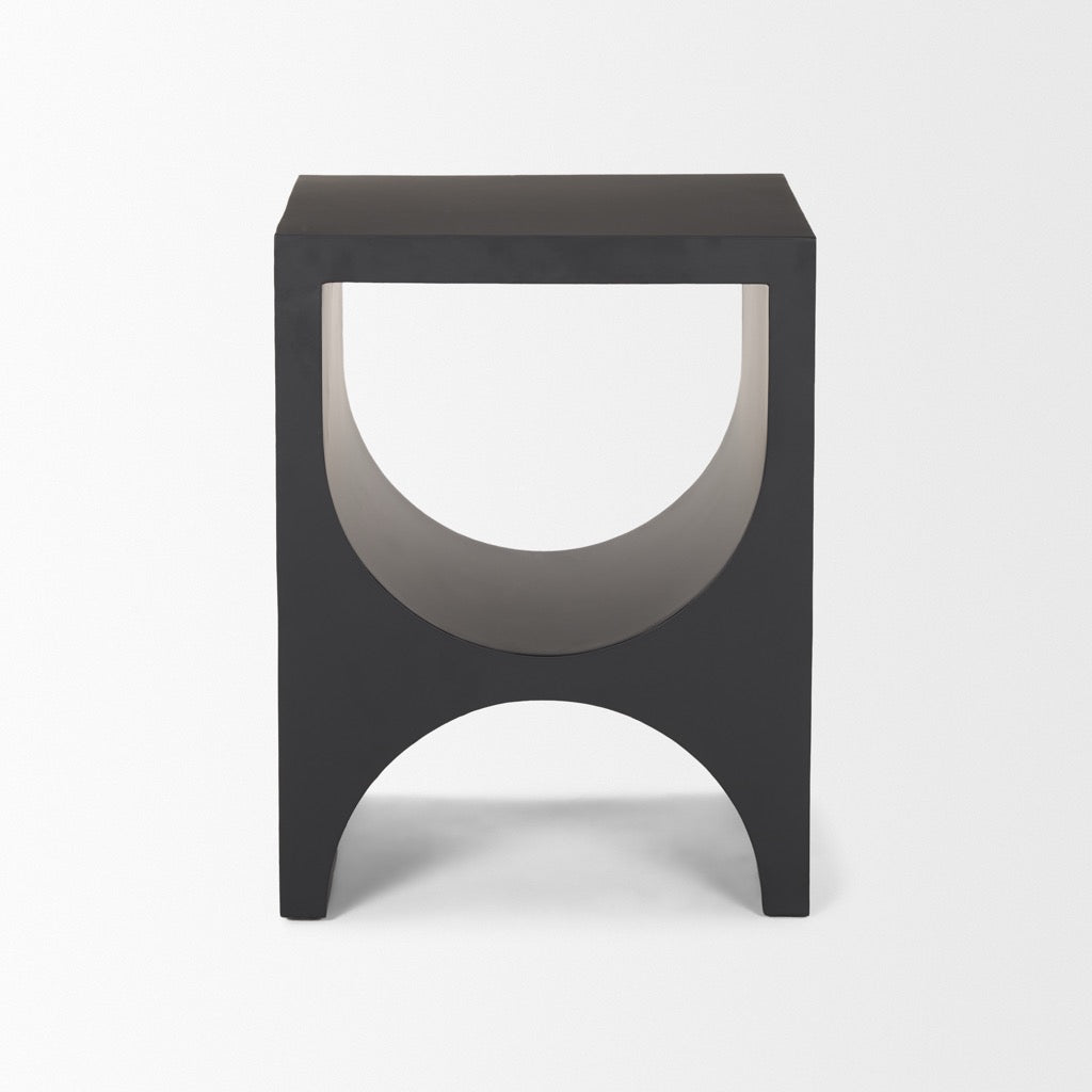 Sobi is a structural square side table crafted from iron metal, seamlessly blending the juxtaposition of clean lines and subtle curves.