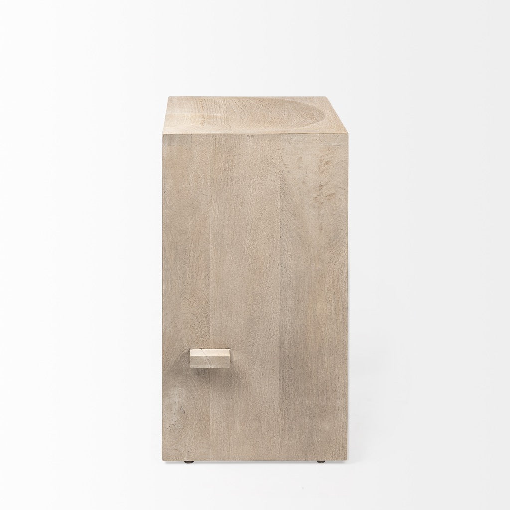 - Subtle Texture: Aida is crafted from solid mango wood, finished in a light gray tone and fine sandblasted to add a subtle texture.