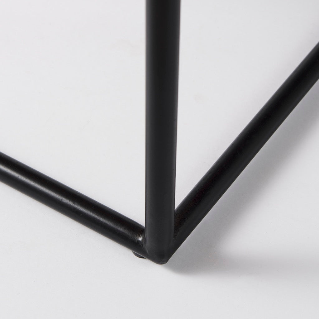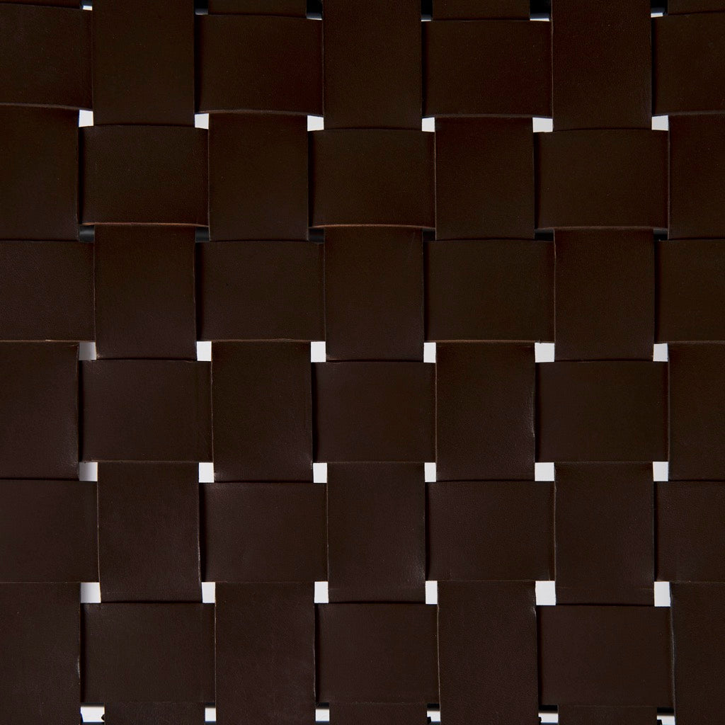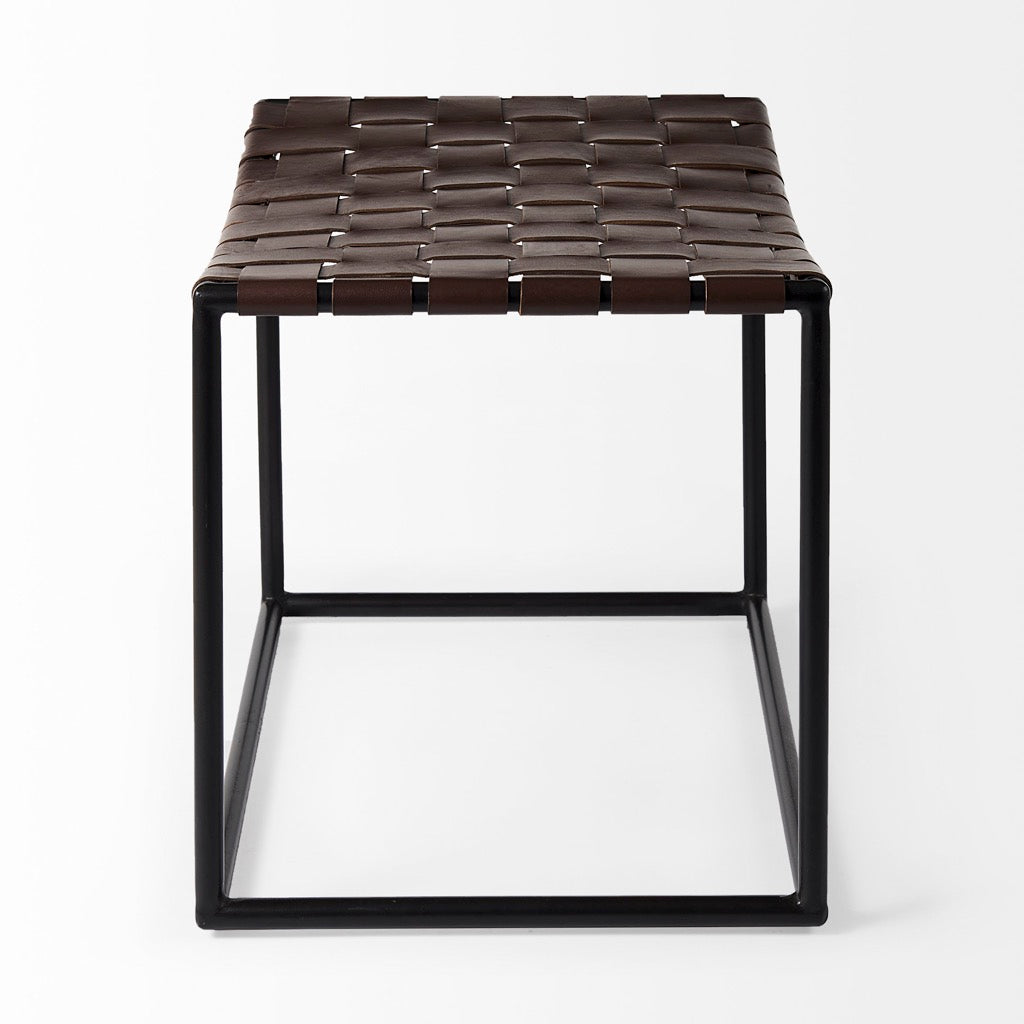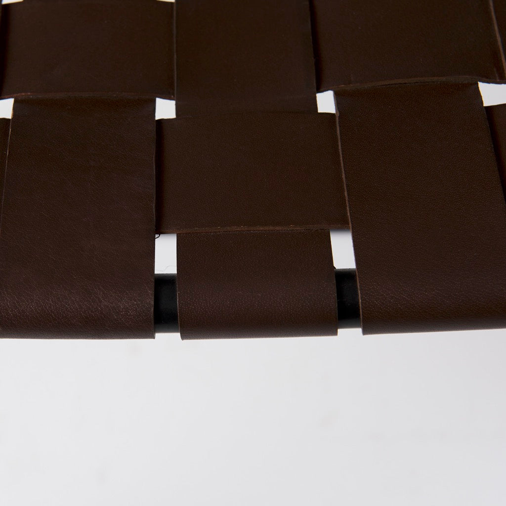 - Smooth Black Iron Finish: The Clarissa is finished with solid black iron legs and a dark brown leather seat that shows off a unique woven formation.