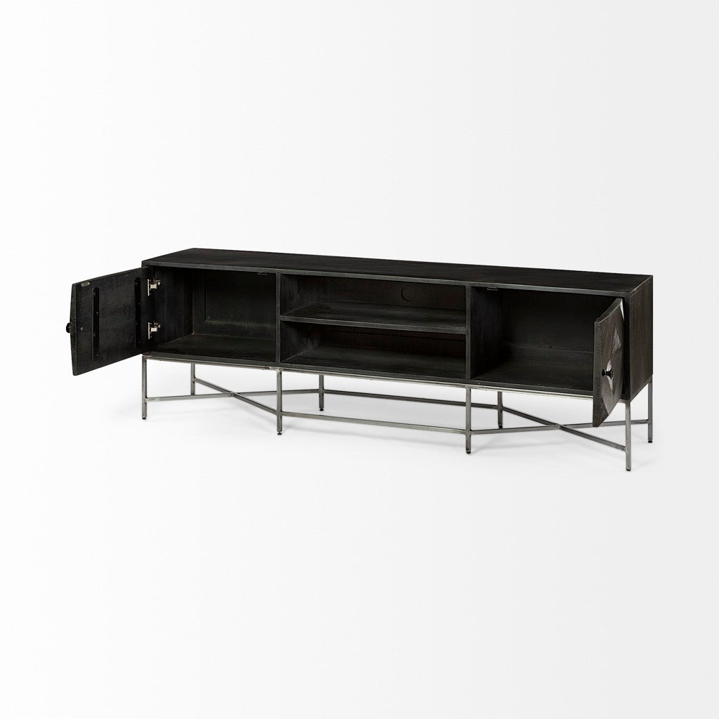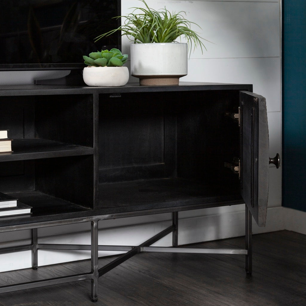 - Ample Storage Space: Featuring two closed-door compartments in addition to the open shelves in the center, the Hogarth I provides ample storage space for a mix of your favorite items. Moreover, the top is large enough to host a 75" television.