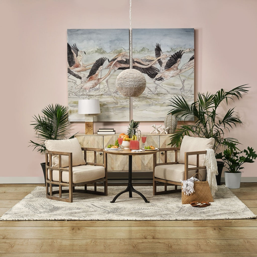 - Solid Wood Construction: Meticulously crafted from light brown stained Indian mango wood, the Hogarth III is a substantial piece of furniture and is built to last for years to come. This piece is supported by an iron base finished in an antiqued brass shade that not only adds to the visuals of the piece but also contributes to the sturdiness and stability.