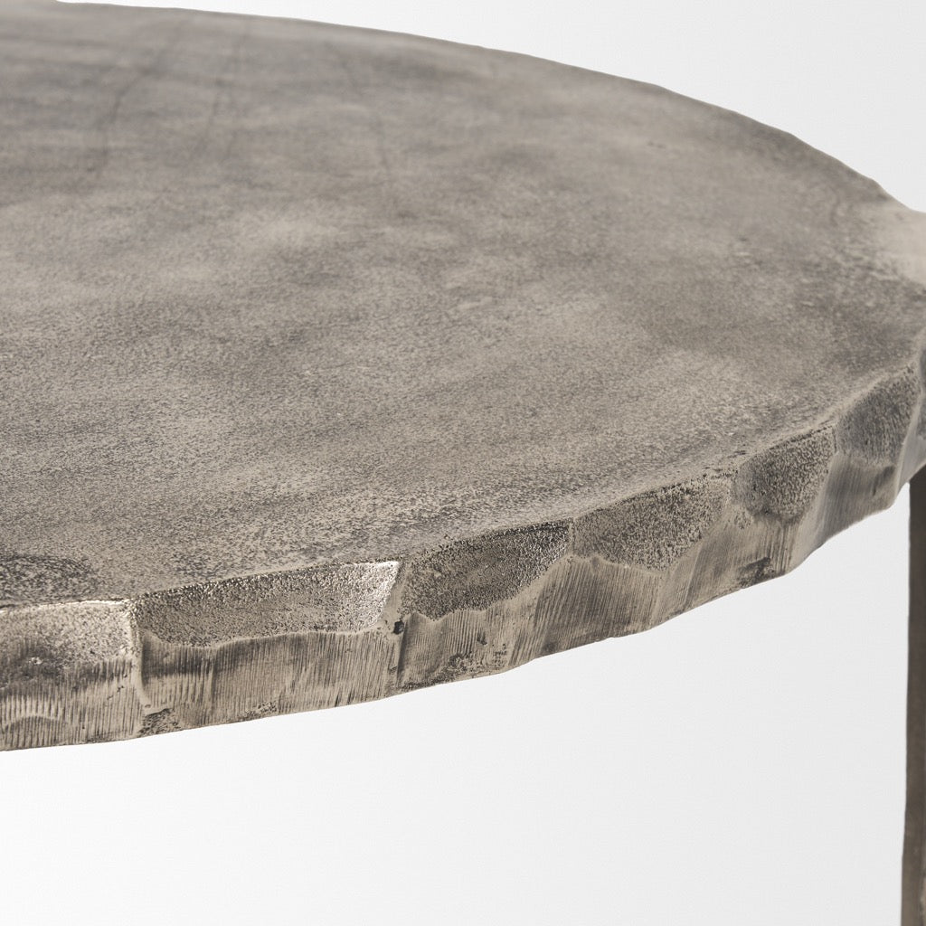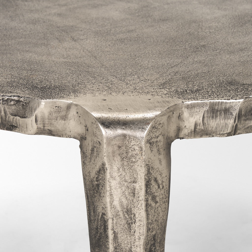 The Randy Coffee Table is made of lightweight cast aluminum with a unique, textured polished nickel finish.