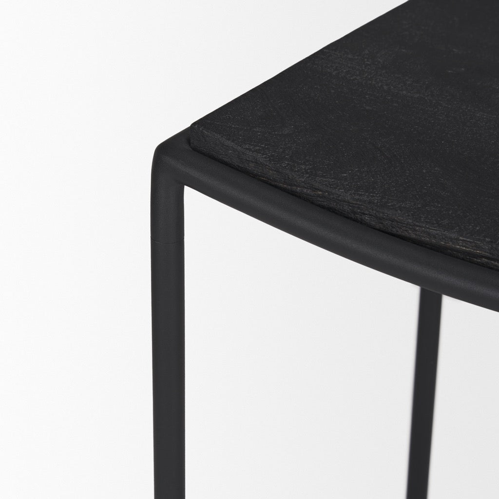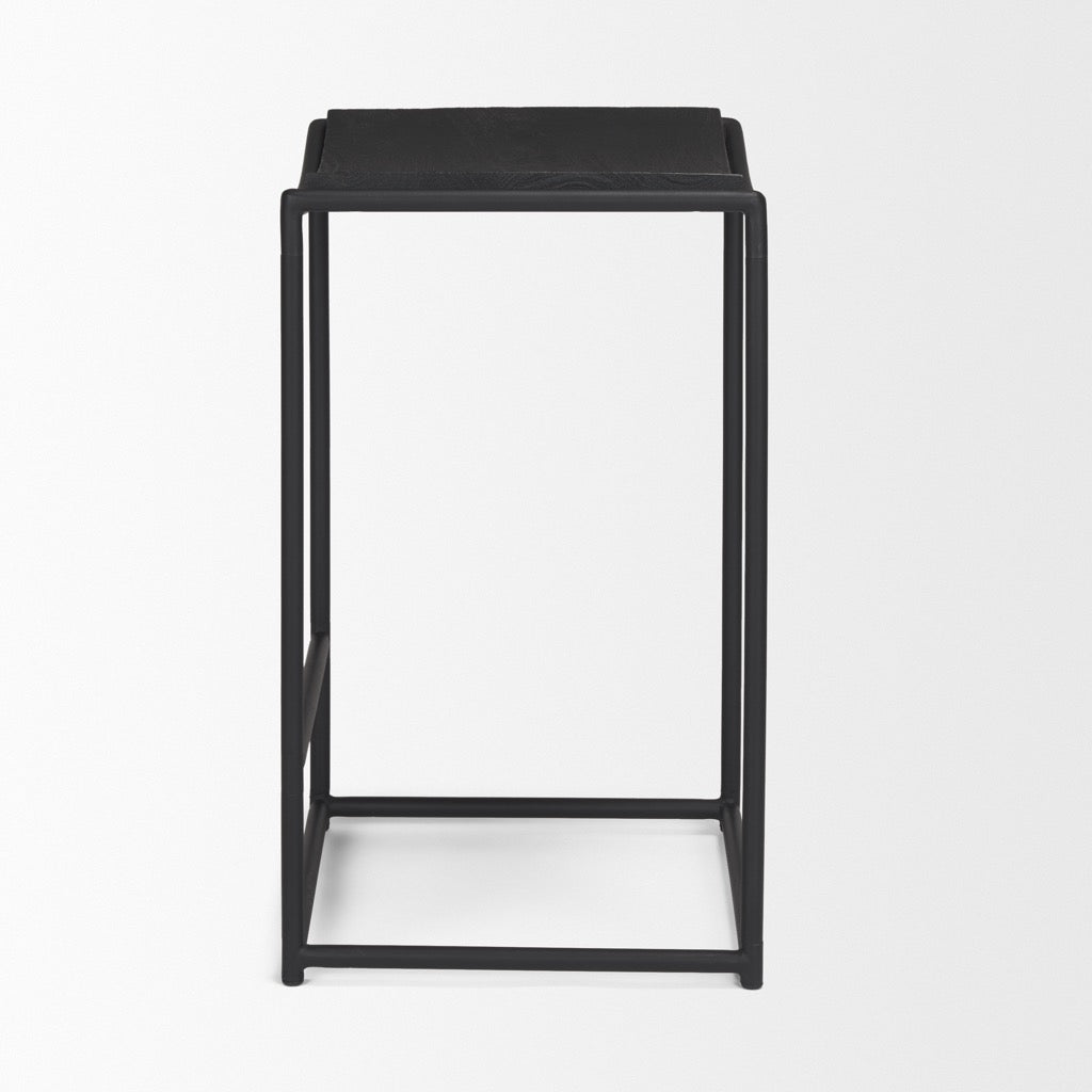 - Materials: Constructed from textured, matte black tube metal with a solid black wooden seat.
