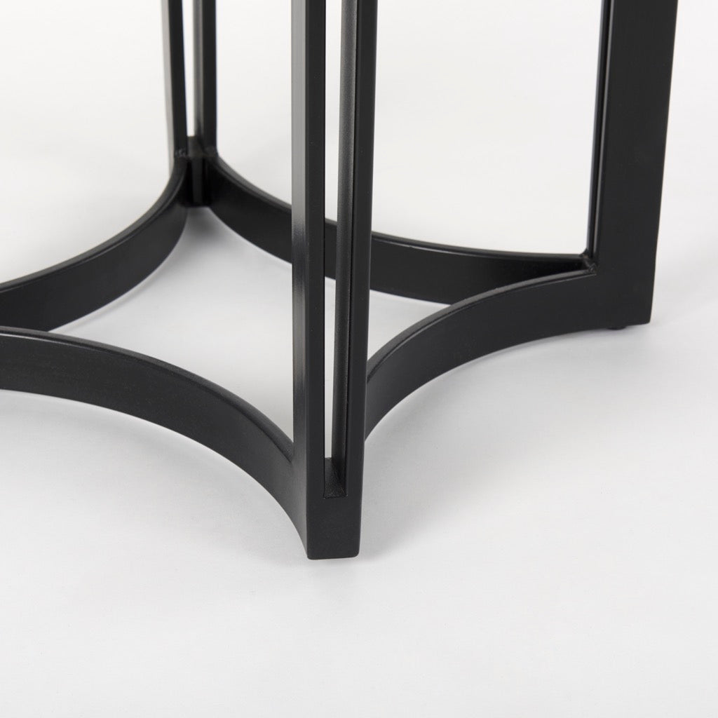 • Construction: Meticulously crafted from premium stone and braced by an iron pedestal, the Tanner cylindrical, solid iron base holds the tabletop in place and guarantees stability.    The table follows an easy assembly process which means it is ready to turn heads in your space shortly after it arrives at the door.