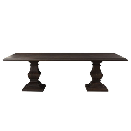 Turned trestle legs and a thick pine table top create a fine dining focal point in the Durham Dining Table. Reclaimed woods are bleached to remove years of paint and stain, then finished with a neutral stain, soft lacquer, and layers of wax for a finish that is easy on the eye and will stand up to rigors of everyday use.