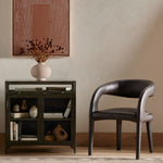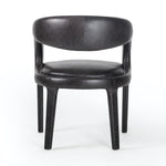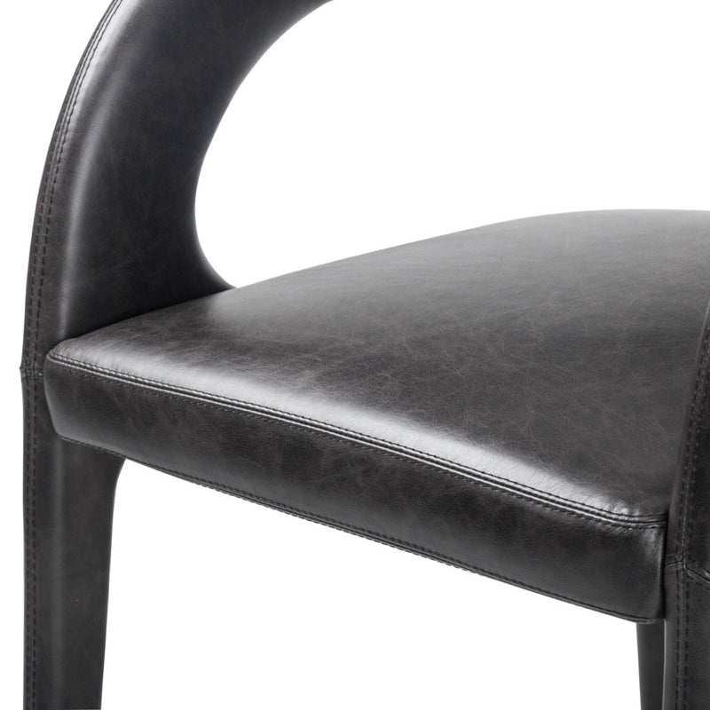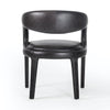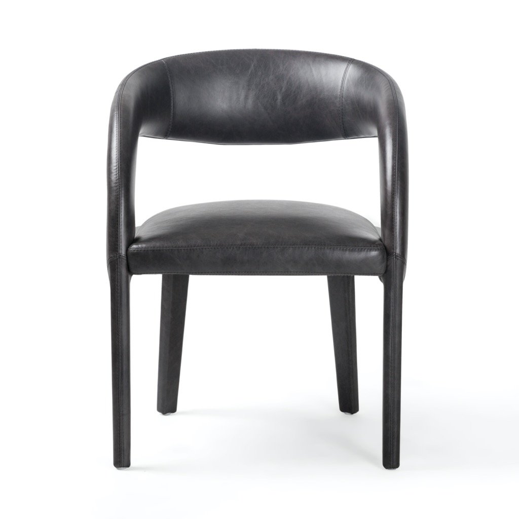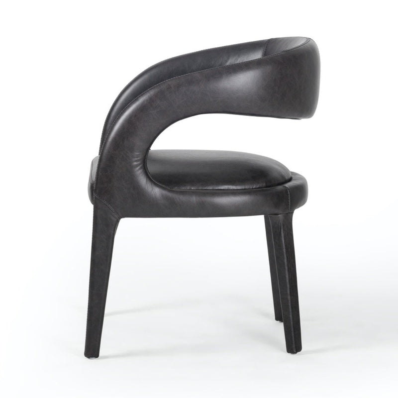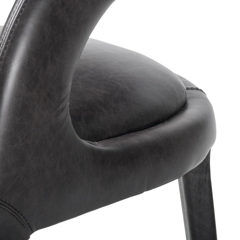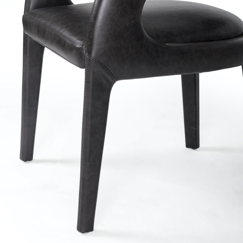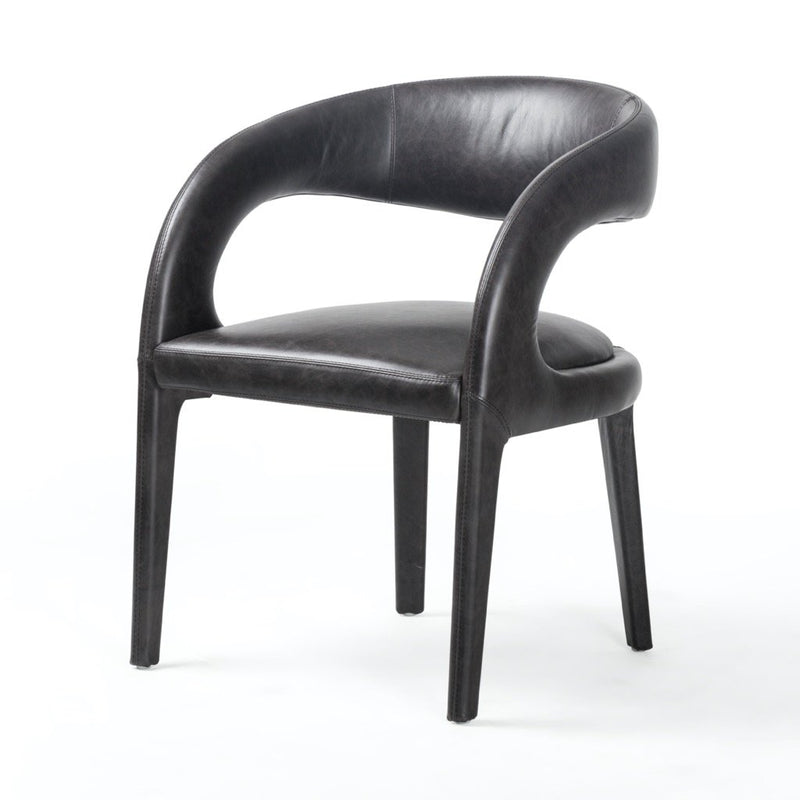 Strike a pose. Well curved and finely sculpted, black top-grain leather exclusive to Four Hands makes for a unique and shapely addition to the modern dining room.