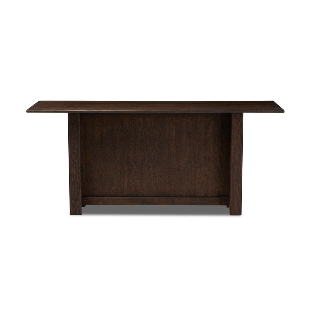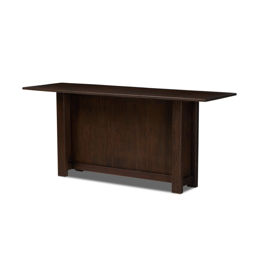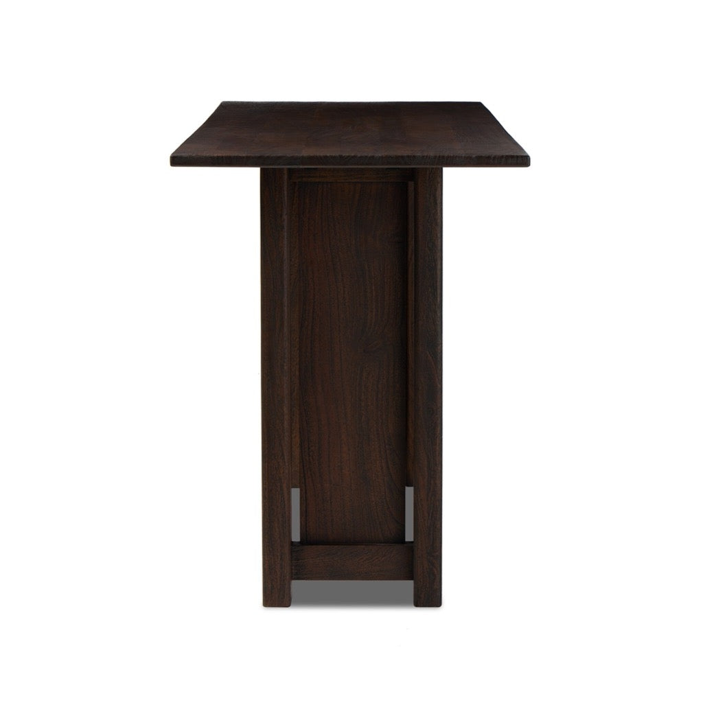 Narrow, versatile and ideal for smaller spaces, this counter-height bar table offers an alternative to the workspace or dining nook. Crafted from dark brown acacia wood.